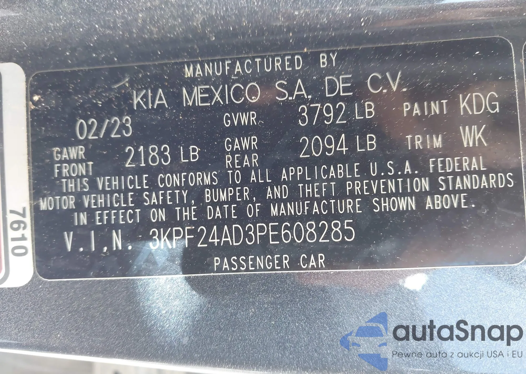 The car Kia Forte 2023 (VIN 3KPF24AD3PE608285) has not been auctioned before. The documents are clean, and the mileage matches or is below the market average. Sold by an insurance company – we recommend purchase. Delivery to the port will take approx. 6–8 weeks.