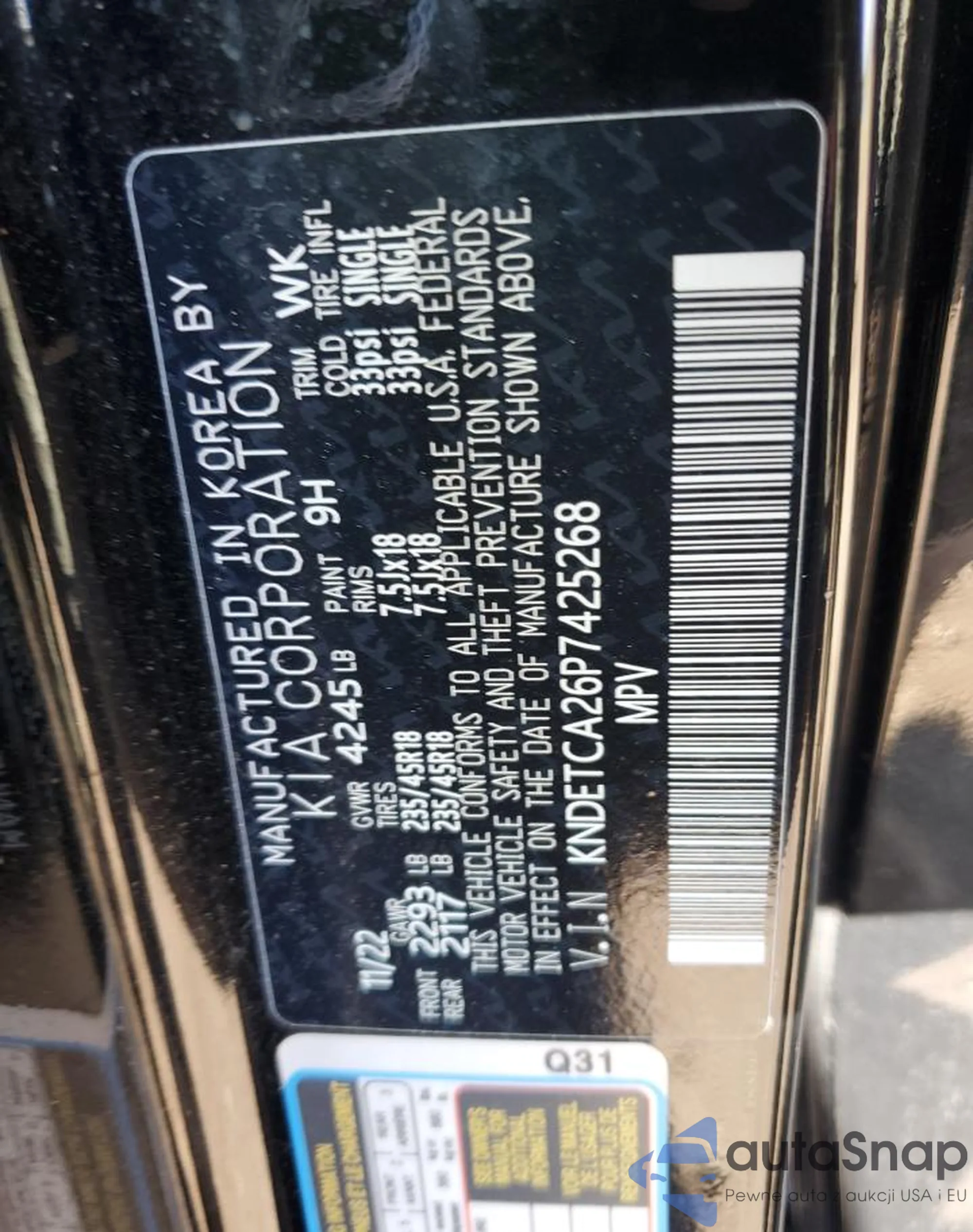 VIN: KNDETCA26P7425268