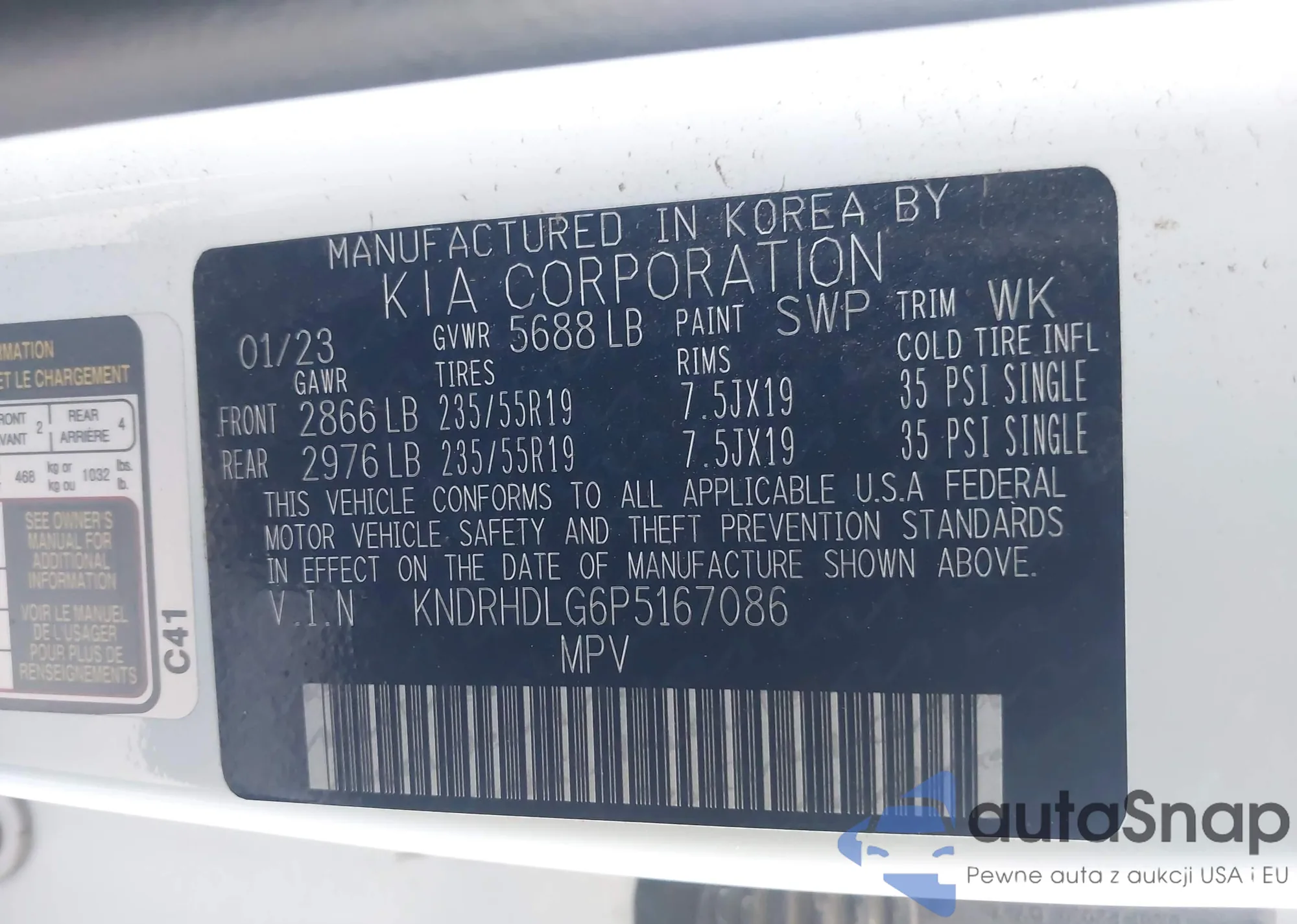 The car Kia Sorento 2023 (VIN KNDRHDLG6P5167086) has not been auctioned before. The documents are clean, and the mileage matches or is below the market average. Sold by an insurance company – we recommend purchase. Delivery to the port will take approx. 6–8 weeks.