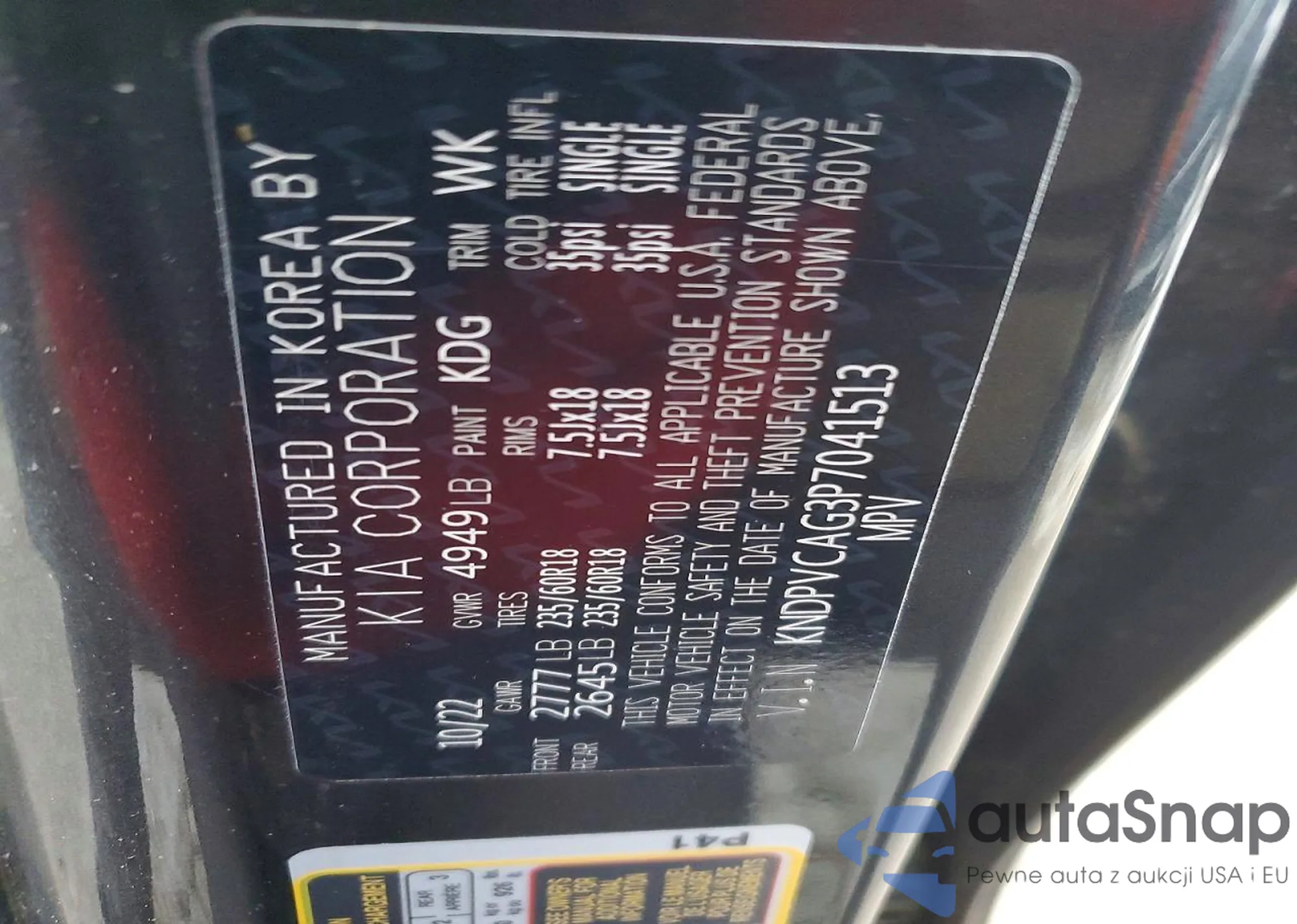 The car Kia Sportage 2023 (VIN KNDPVCAG3P7041513) is sold by an unverified seller. We recommend checking the Carfax report and confirming registration possibilities before purchase.