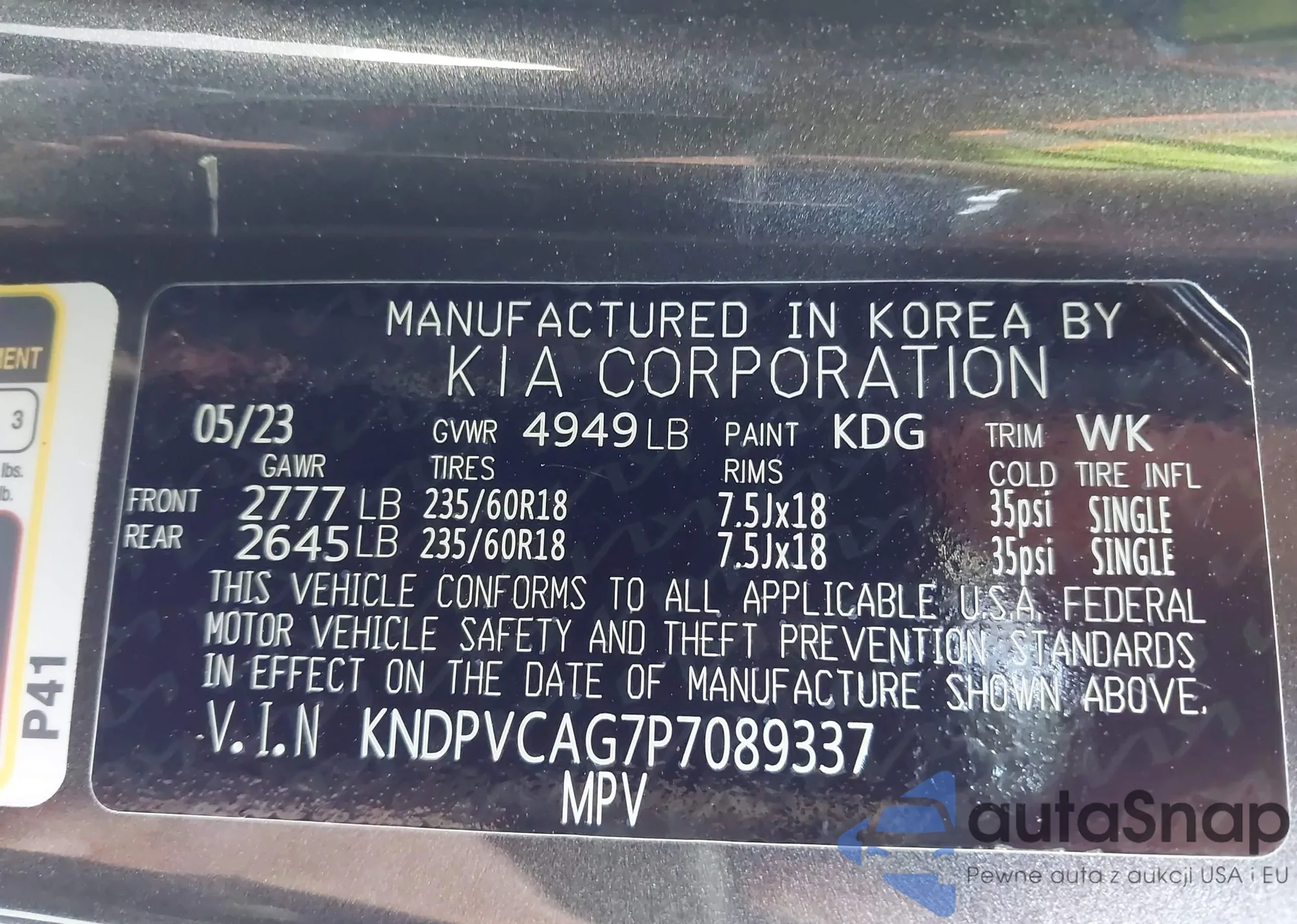 The car Kia Sportage 2023 (VIN KNDPVCAG7P7089337) has not been auctioned before. The documents are clean, and the mileage matches or is below the market average. Sold by an insurance company – we recommend purchase. Delivery to the port will take approx. 6–8 weeks.