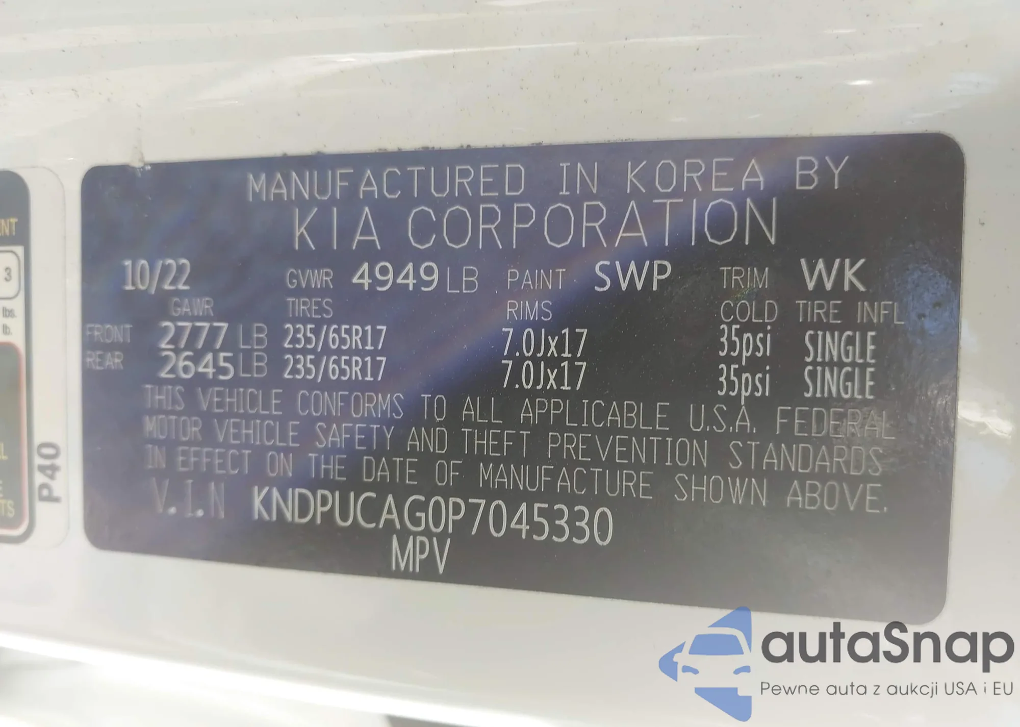 VIN: KNDPUCAG0P7045330