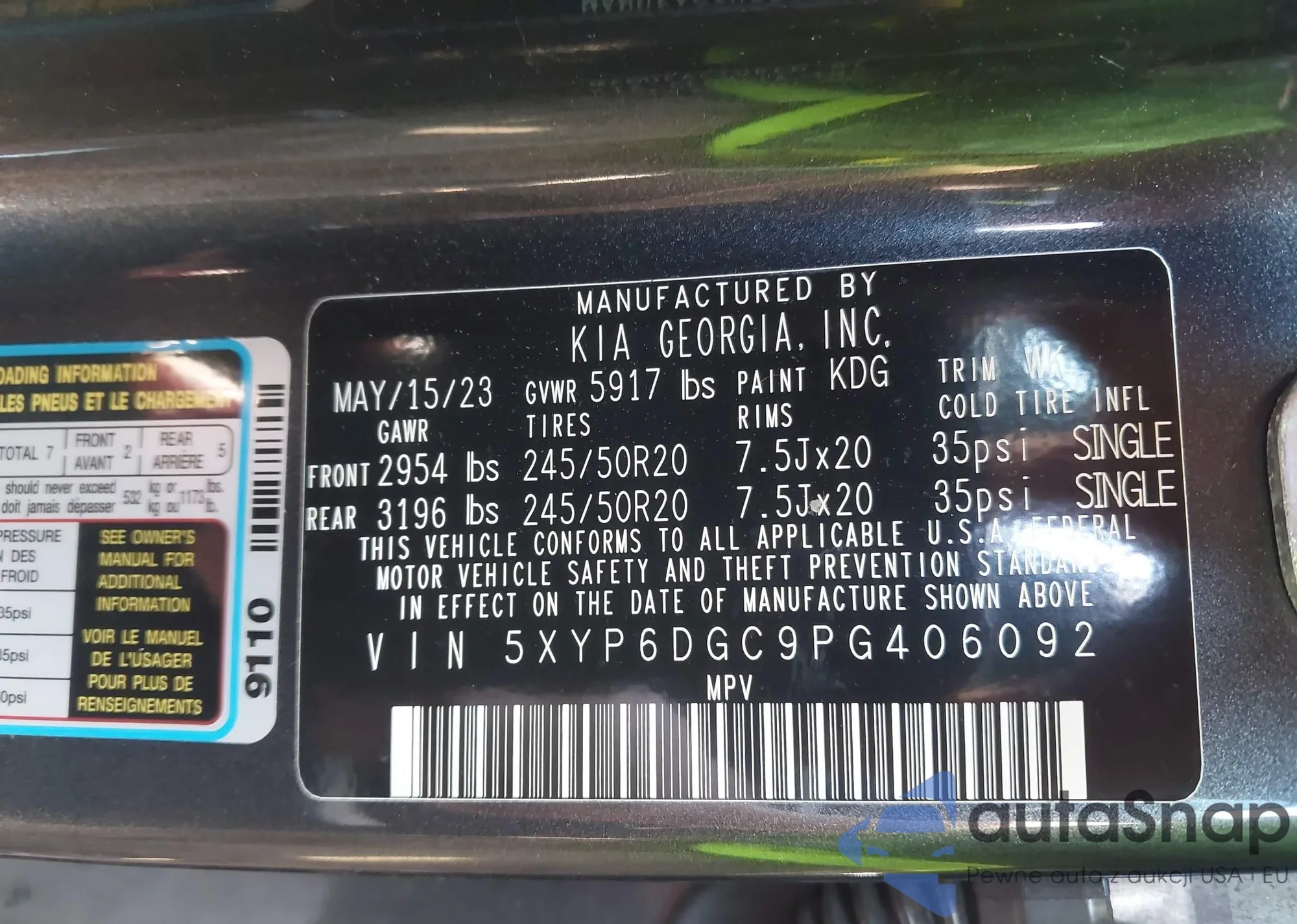 VIN: 5XYP6DGC9PG406092