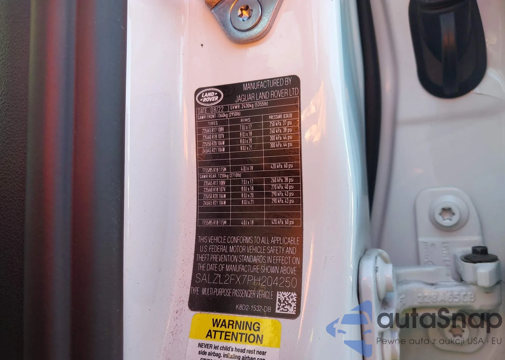 The car Land Rover Range Rover Evoque 2023 (VIN SALZL2FX7PH204250) has not been auctioned before. The documents are clean, and the mileage matches or is below the market average. Sold by an insurance company – we recommend purchase. Delivery to the port will take approx. 6–8 weeks.