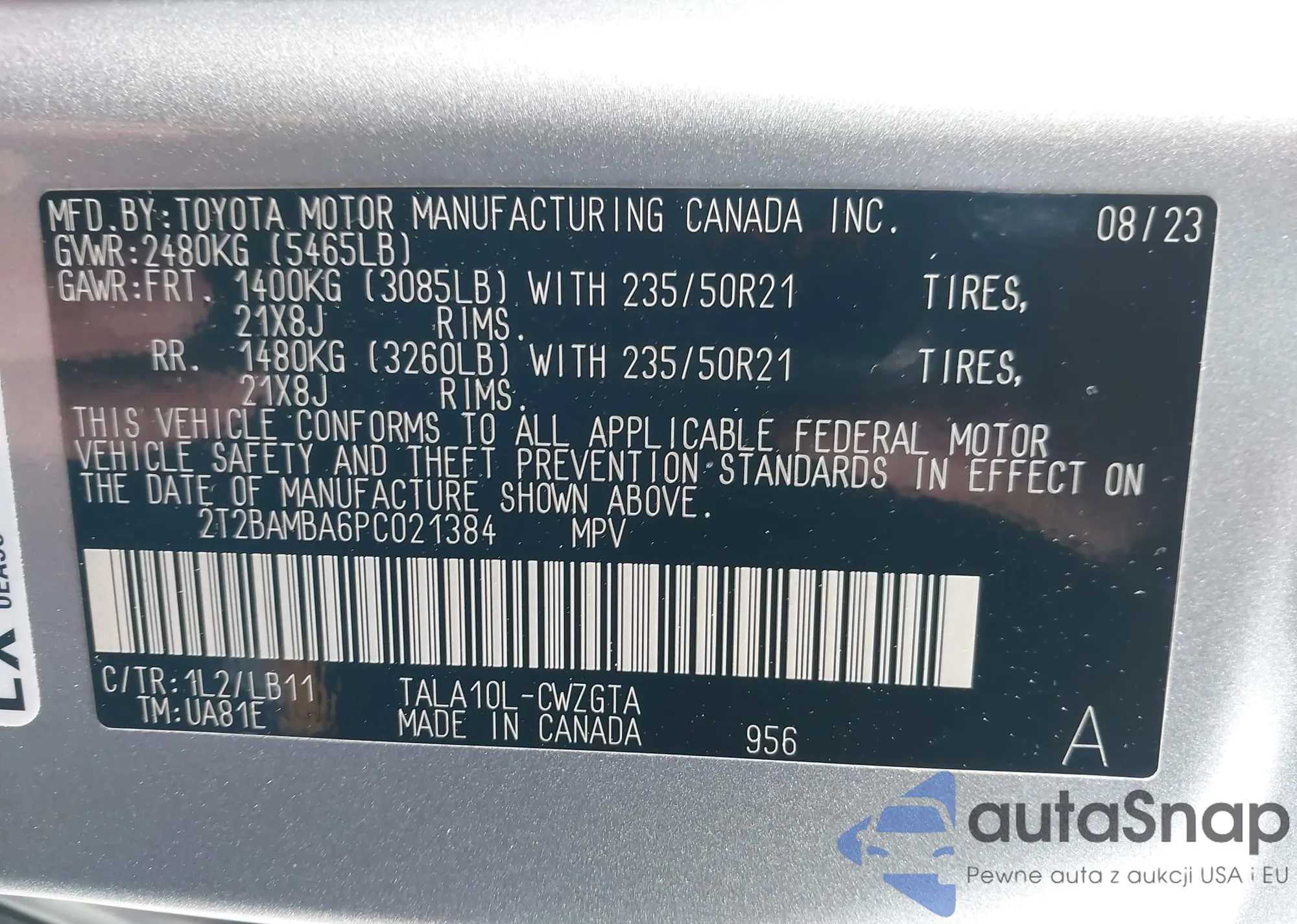 • VIN: 2T2BAMBA6PC021384