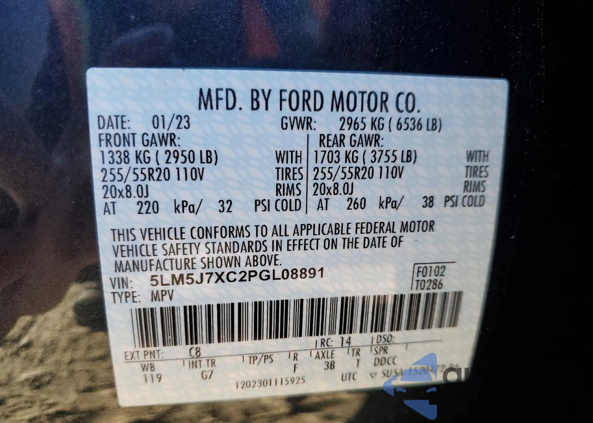 VIN: 5LM5J7XC2PGL08891