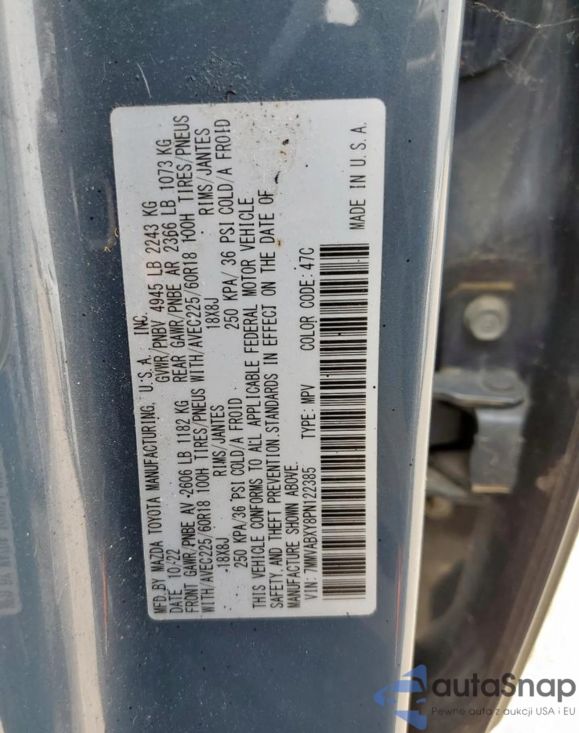 VIN: 7MMVABXY8PN122385