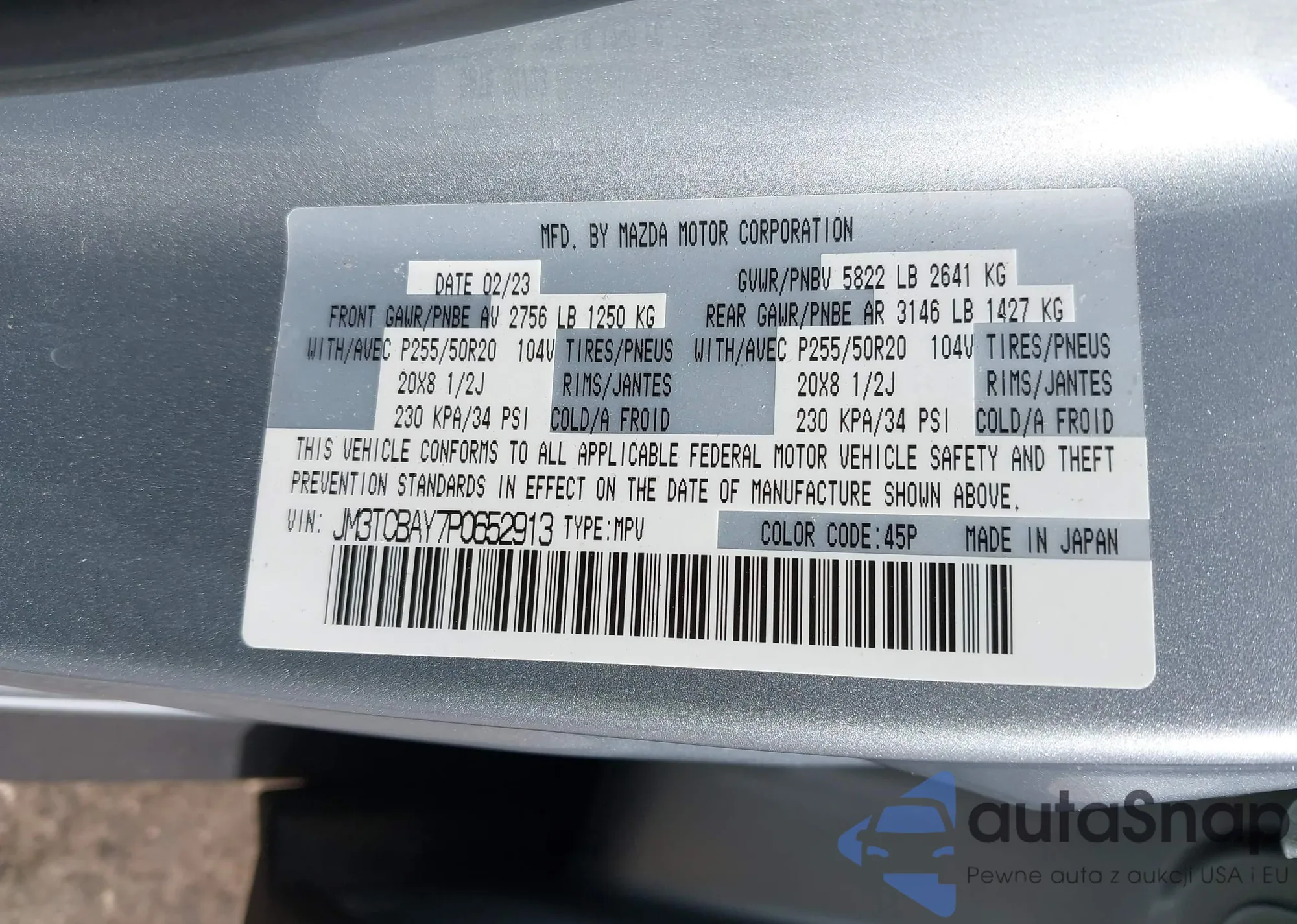 VIN: JM3TCBAY7P0652913