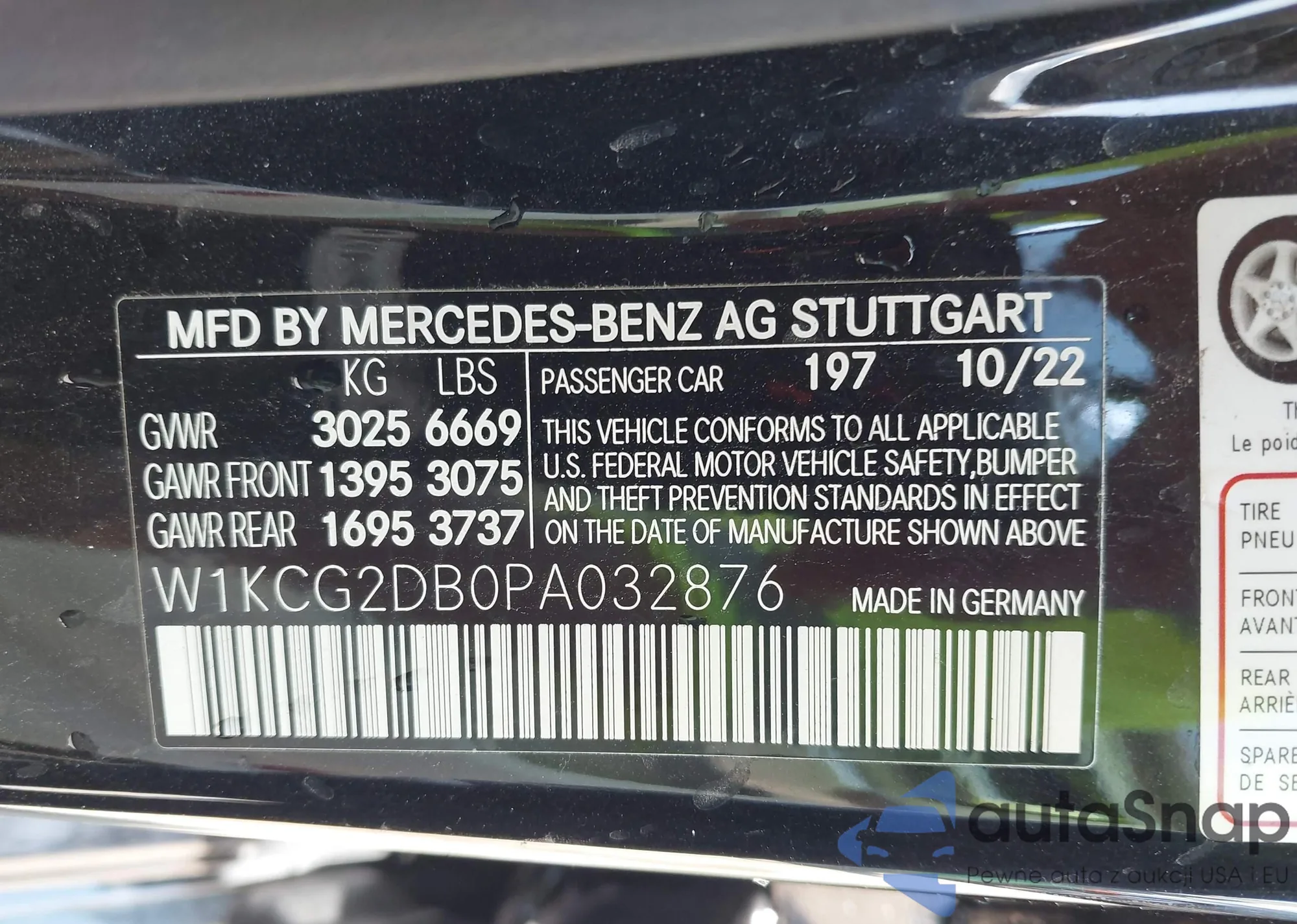 VIN: W1KCG2DB0PA032876