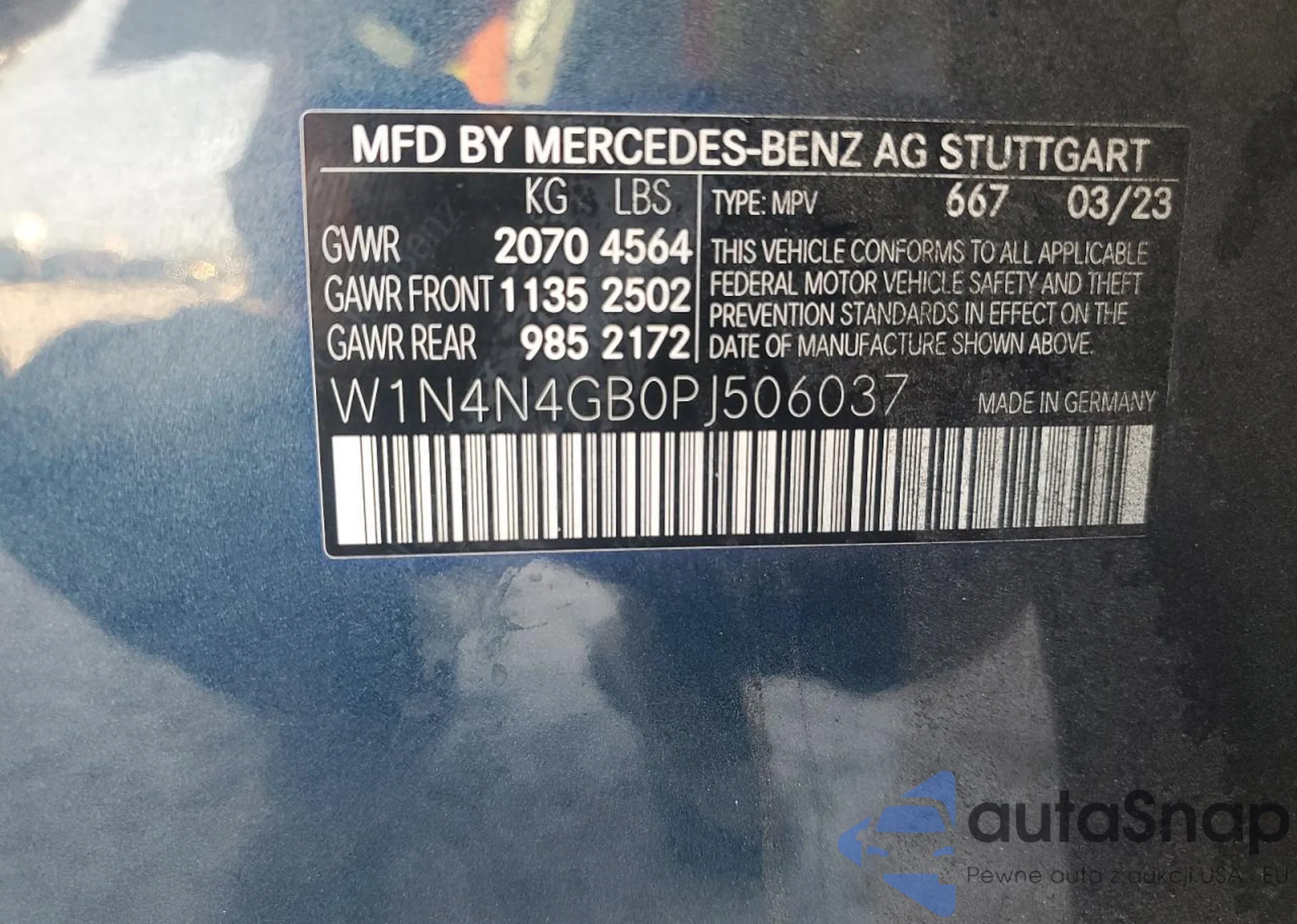 VIN: W1N4N4GB0PJ506037