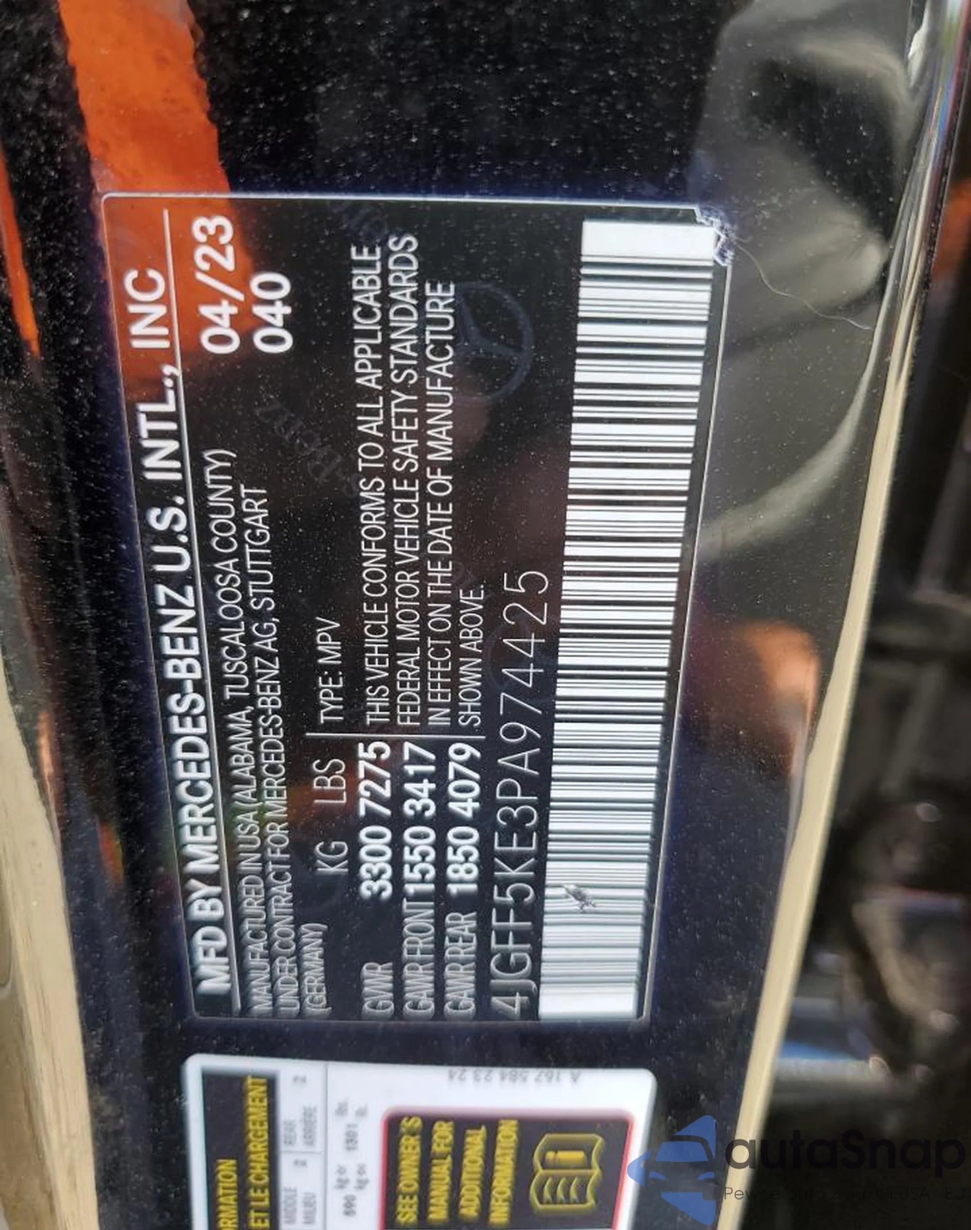 VIN: 4JGFF5KE3PA974425