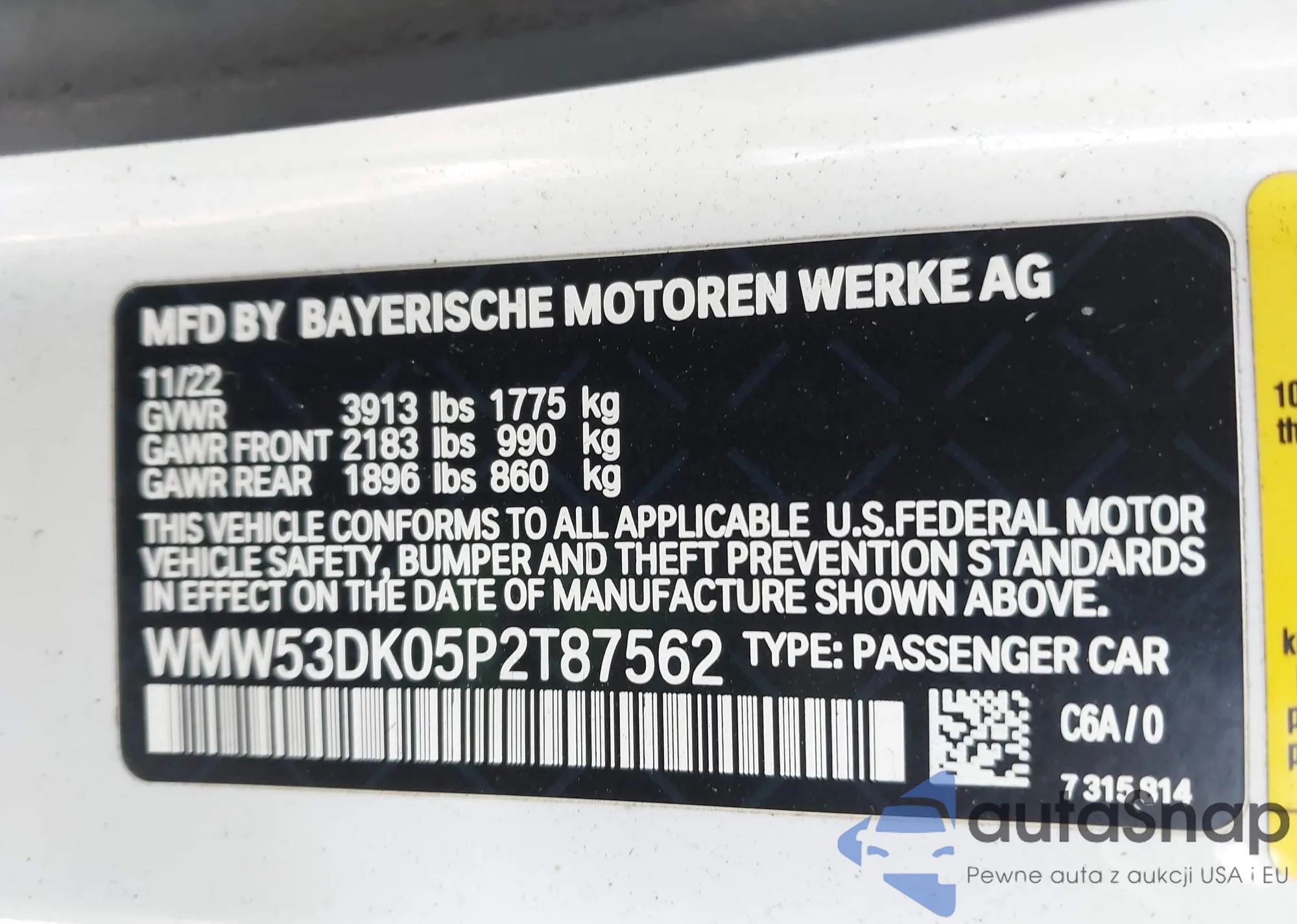 VIN: WMW53DK05P2T87562