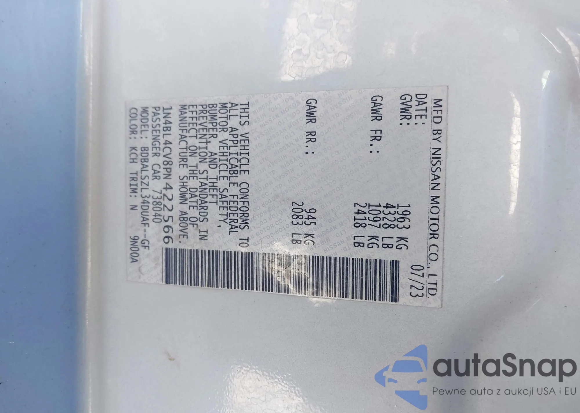 VIN: 1N4BL4CV8PN422566