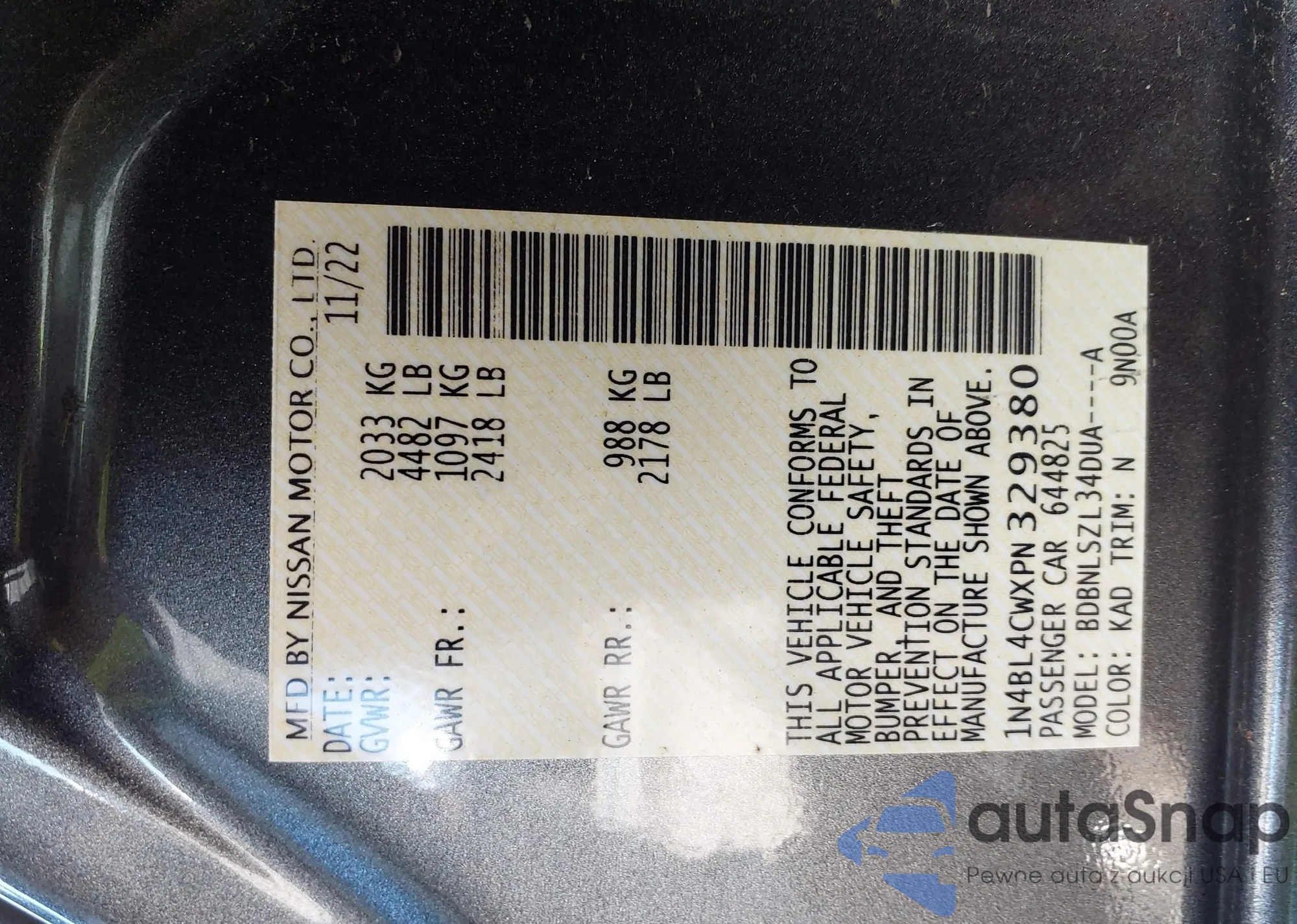 VIN: 1N4BL4CWXPN329380