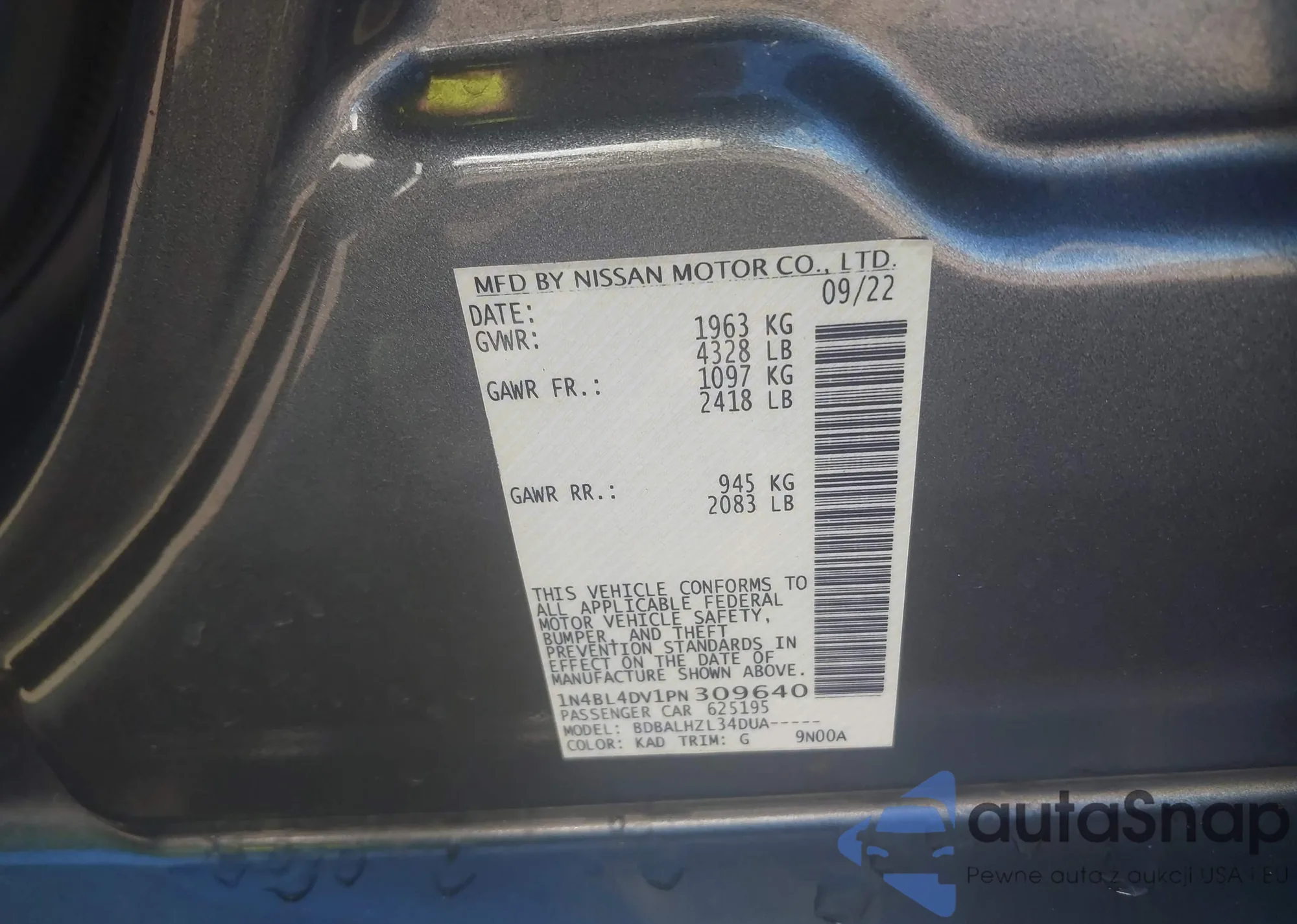 VIN: 1N4BL4DV1PN309640
