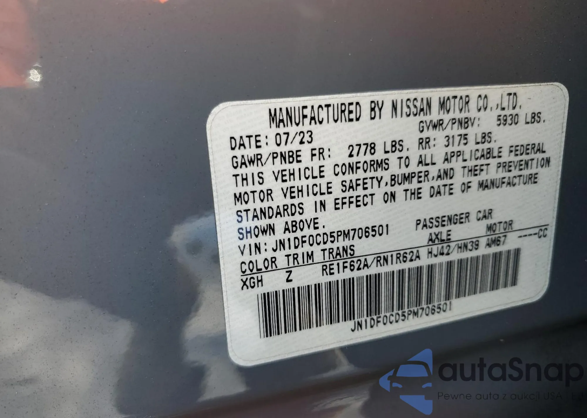 The car Nissan Ariya 2023 (VIN JN1DF0CD5PM706501) is sold by an unverified seller. We recommend checking the Carfax report and confirming registration possibilities before purchase.