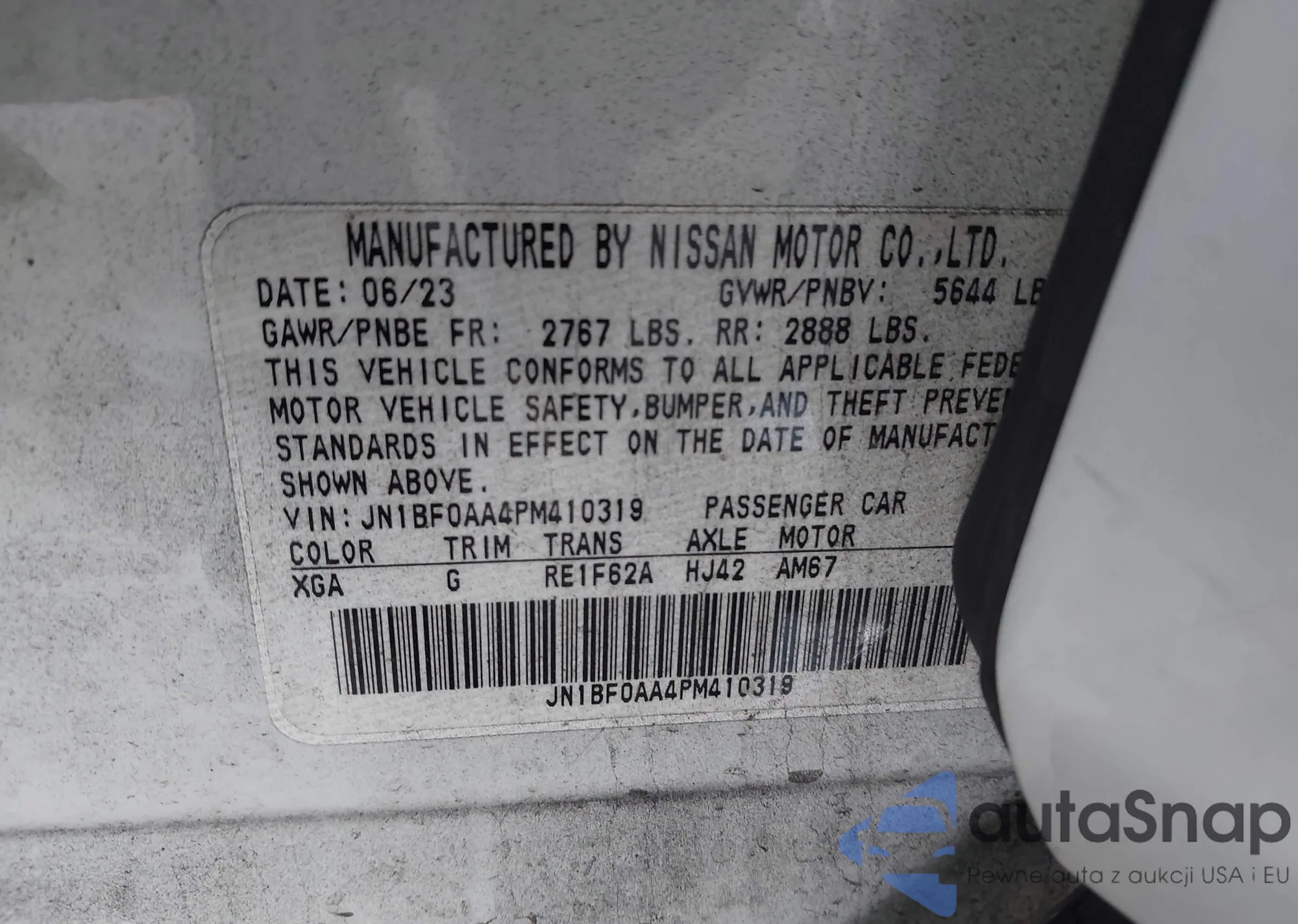 The car Nissan Ariya 2023 (VIN JN1BF0AA4PM410319) has not been auctioned before. The documents are clean, and the mileage matches or is below the market average. Sold by an insurance company – we recommend purchase. Delivery to the port will take approx. 6–8 weeks.
