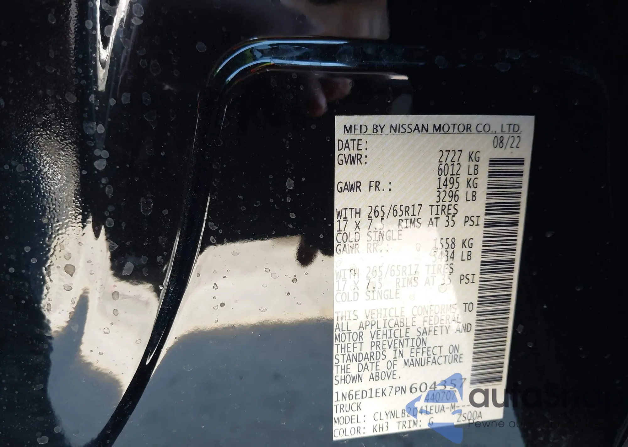 • VIN: 1N6ED1EK7PN604357