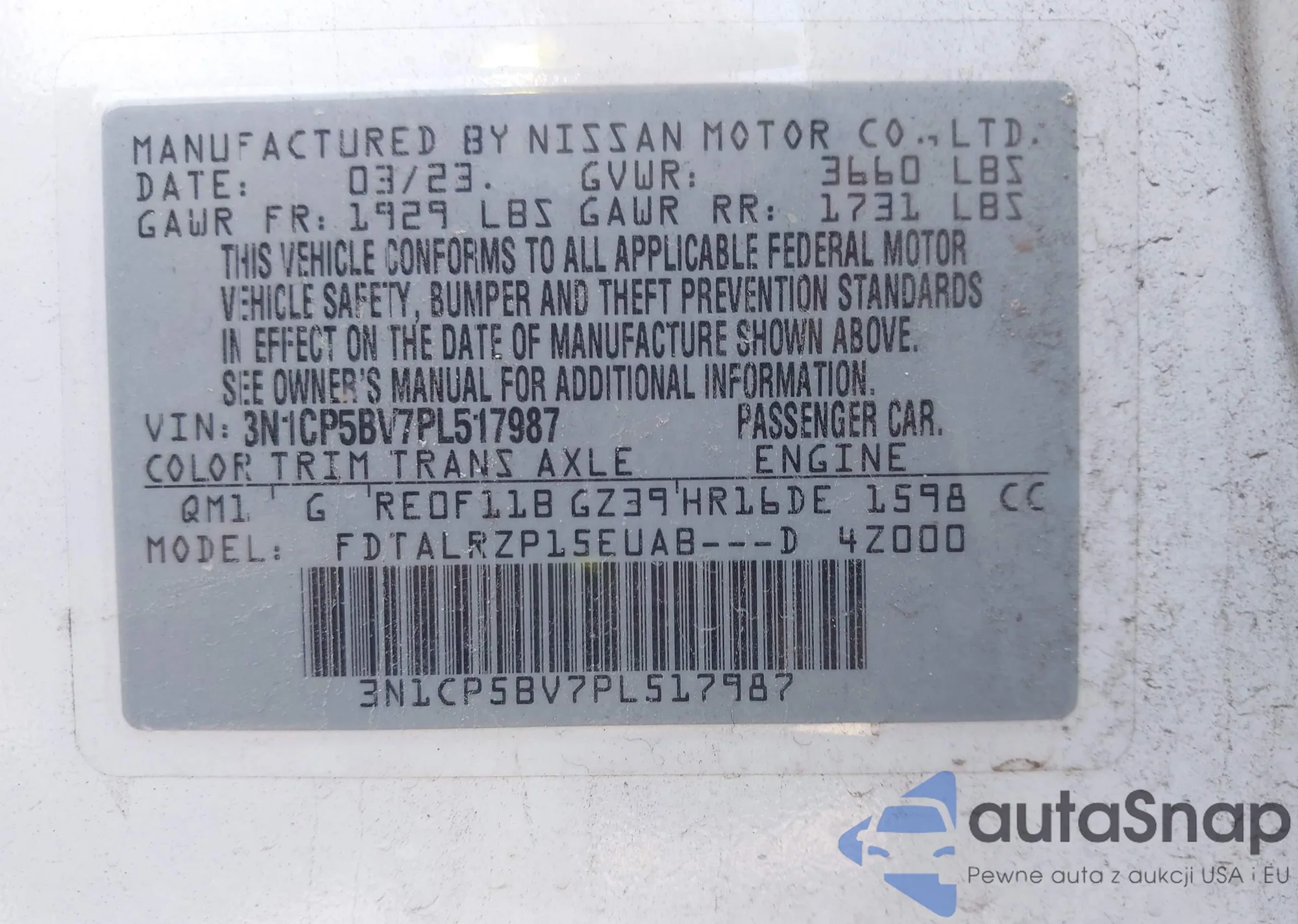 VIN: 3N1CP5BV7PL517987