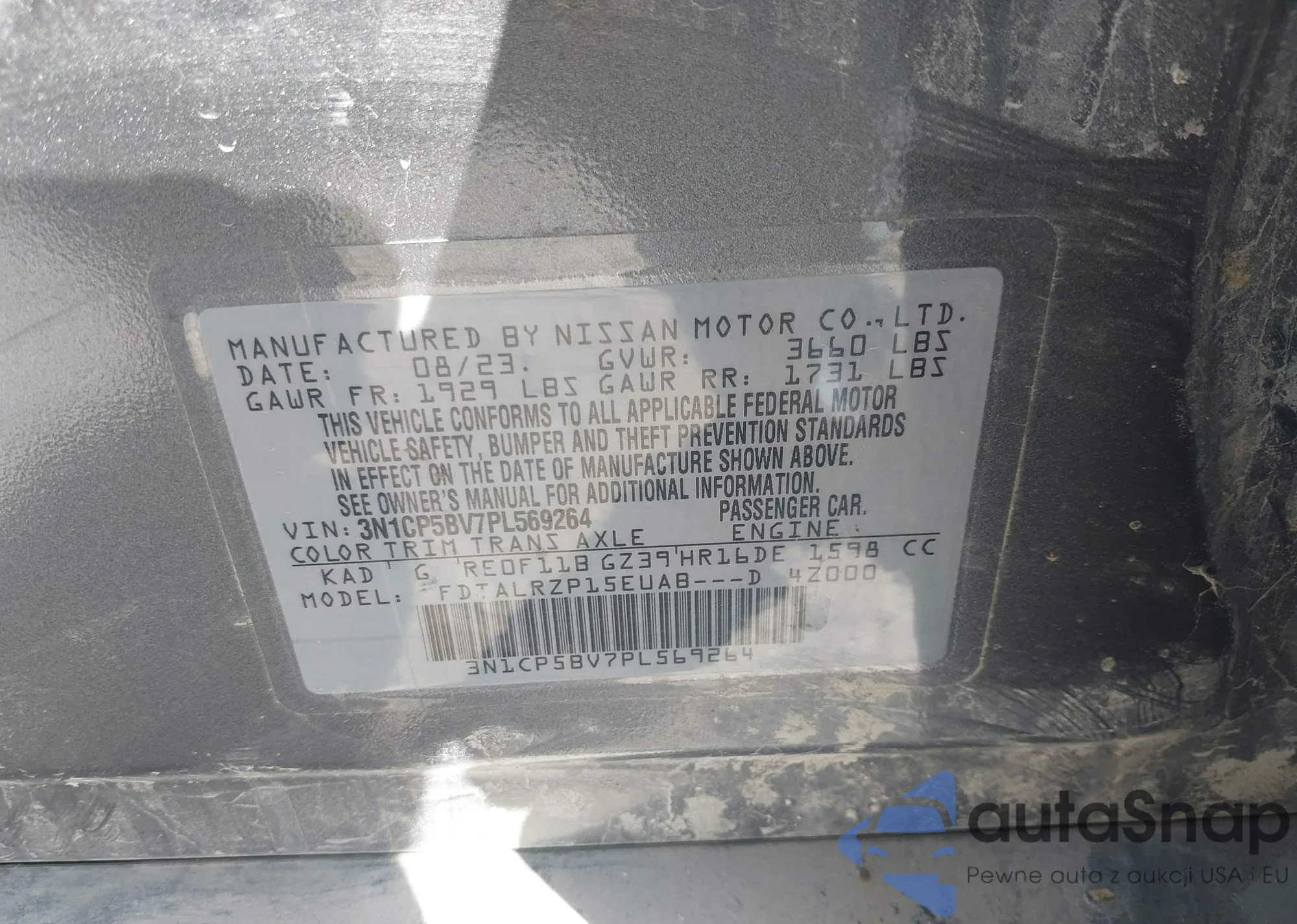 • VIN: 3N1CP5BV7PL569264