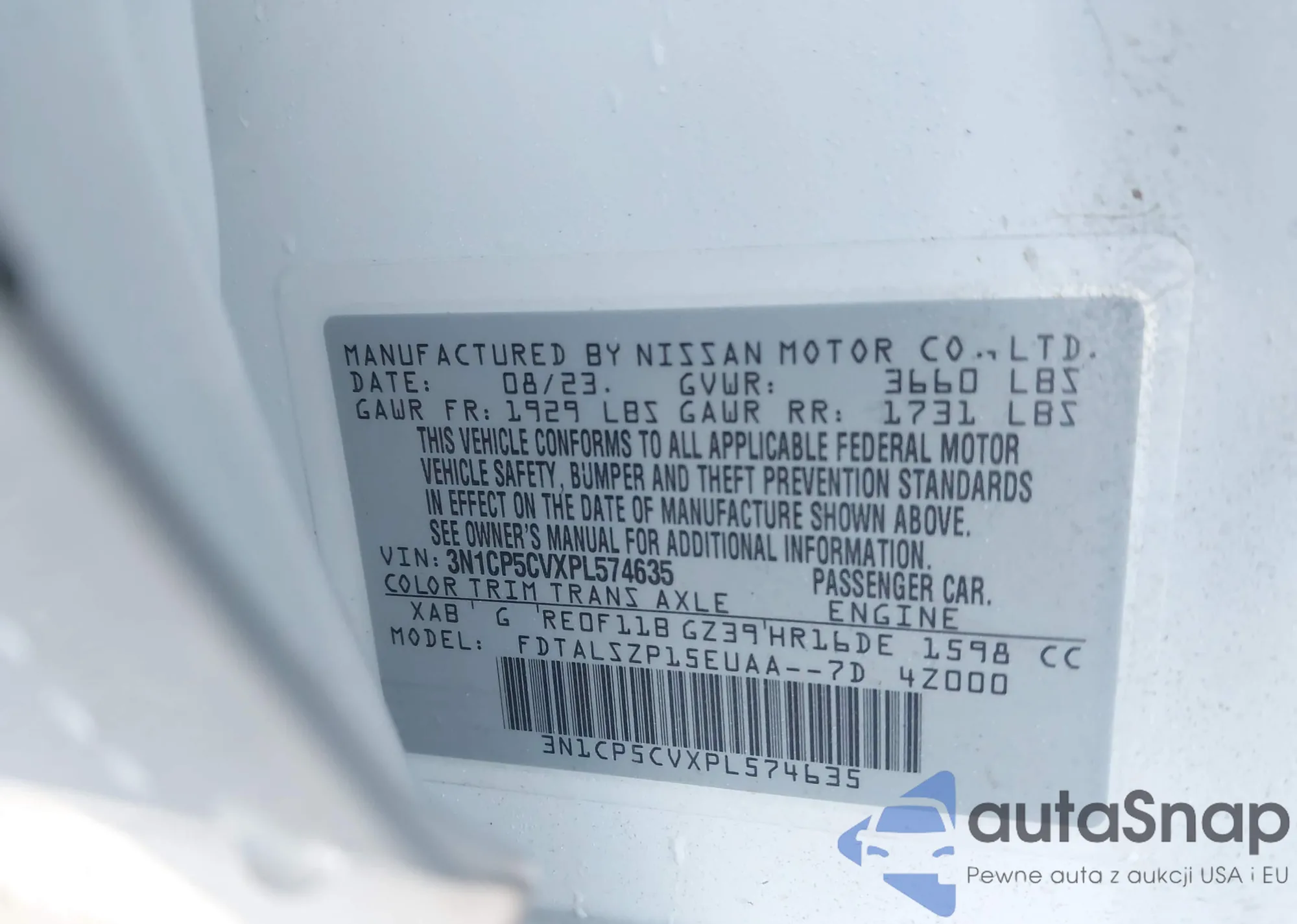 VIN: 3N1CP5CVXPL574635
