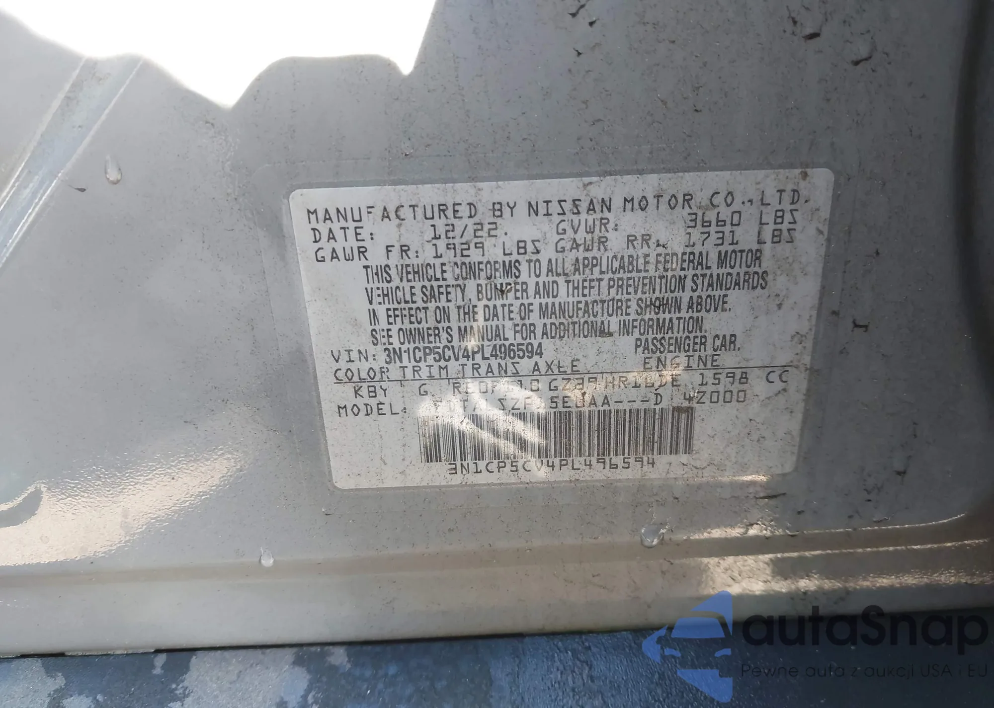 VIN: 3N1CP5CV4PL496594