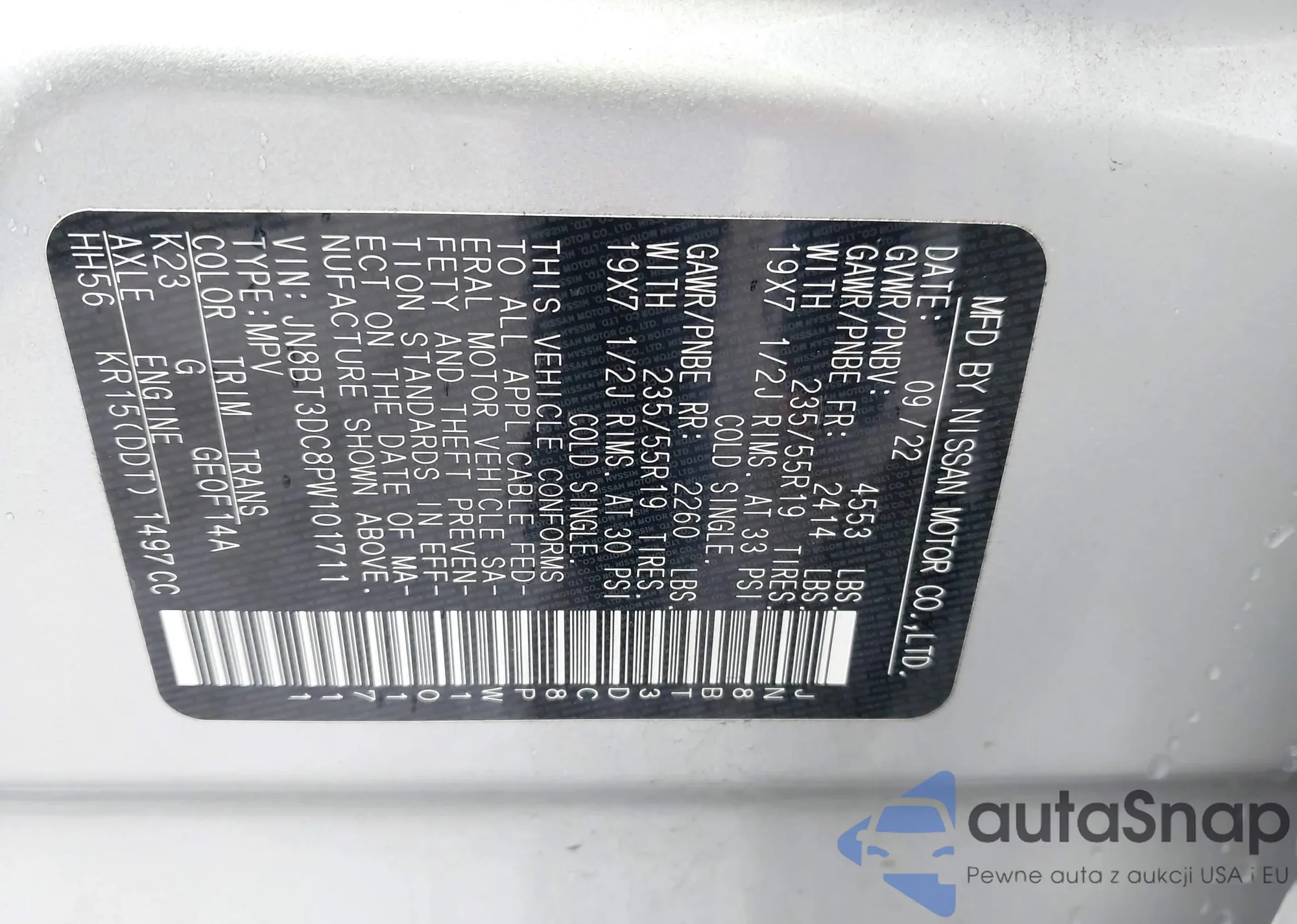 The car Nissan Rogue 2023 (VIN JN8BT3DC8PW101711) has not been auctioned before. The documents are clean, and the mileage matches or is below the market average. Sold by an insurance company – we recommend purchase. Delivery to the port will take approx. 6–8 weeks.