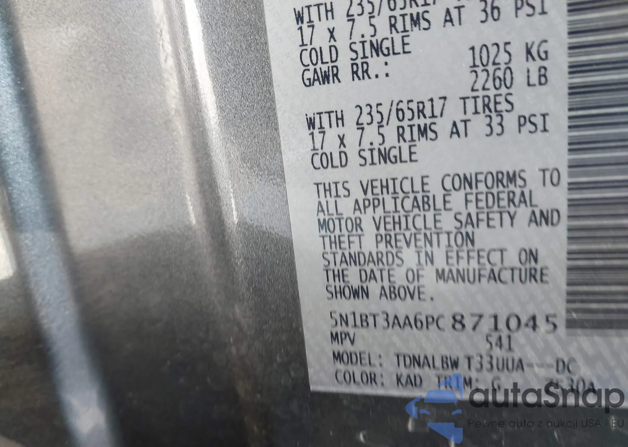 VIN: 5N1BT3AA6PC871045