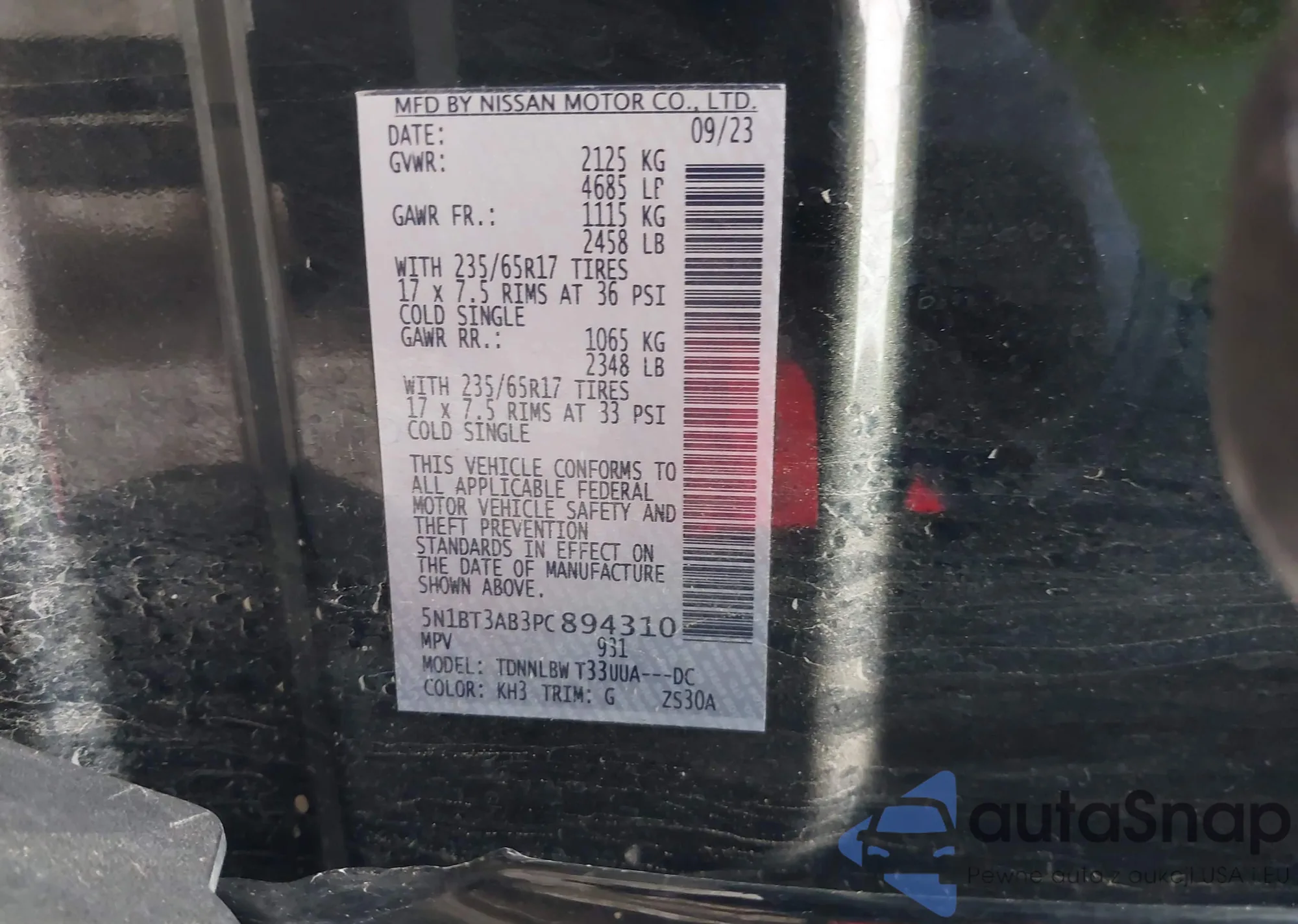 VIN: 5N1BT3AB3PC894310