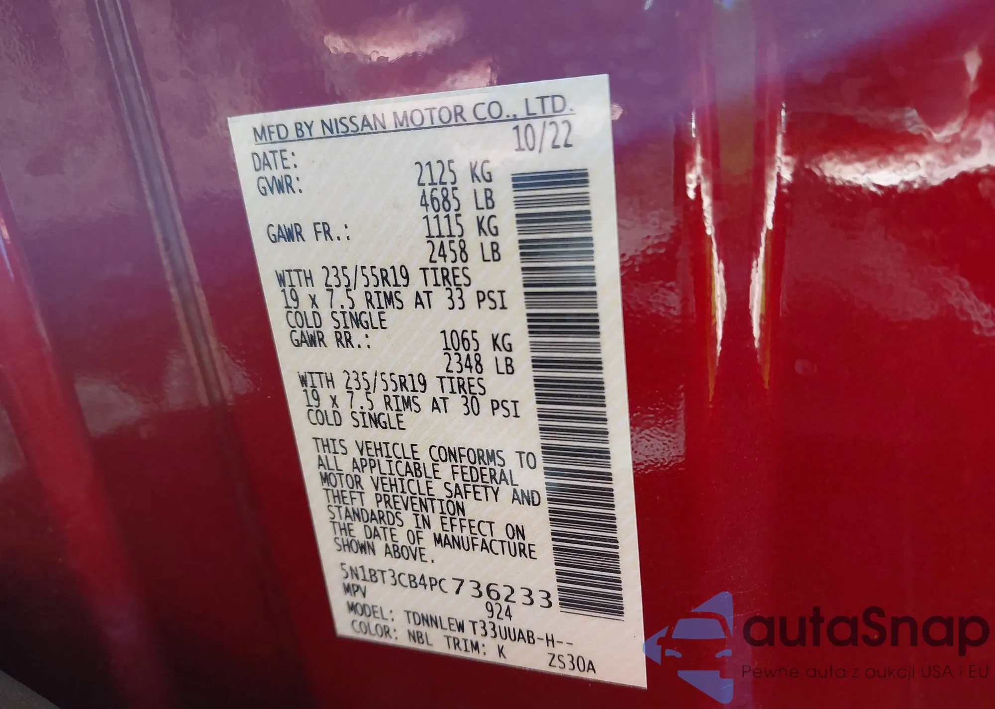 VIN: 5N1BT3CB4PC736233
