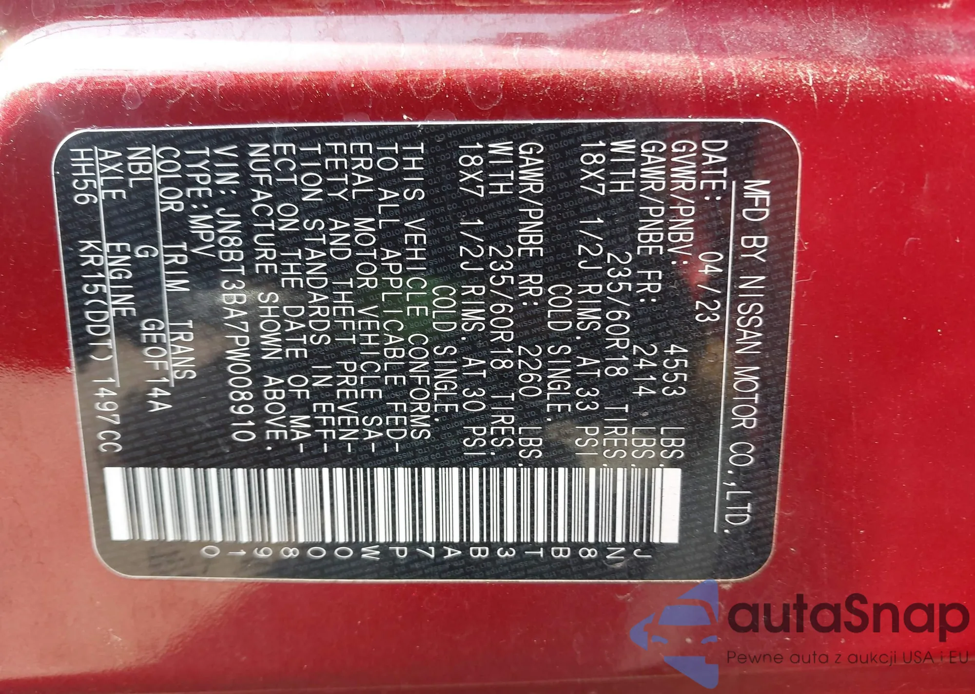 VIN: JN8BT3BA7PW008910