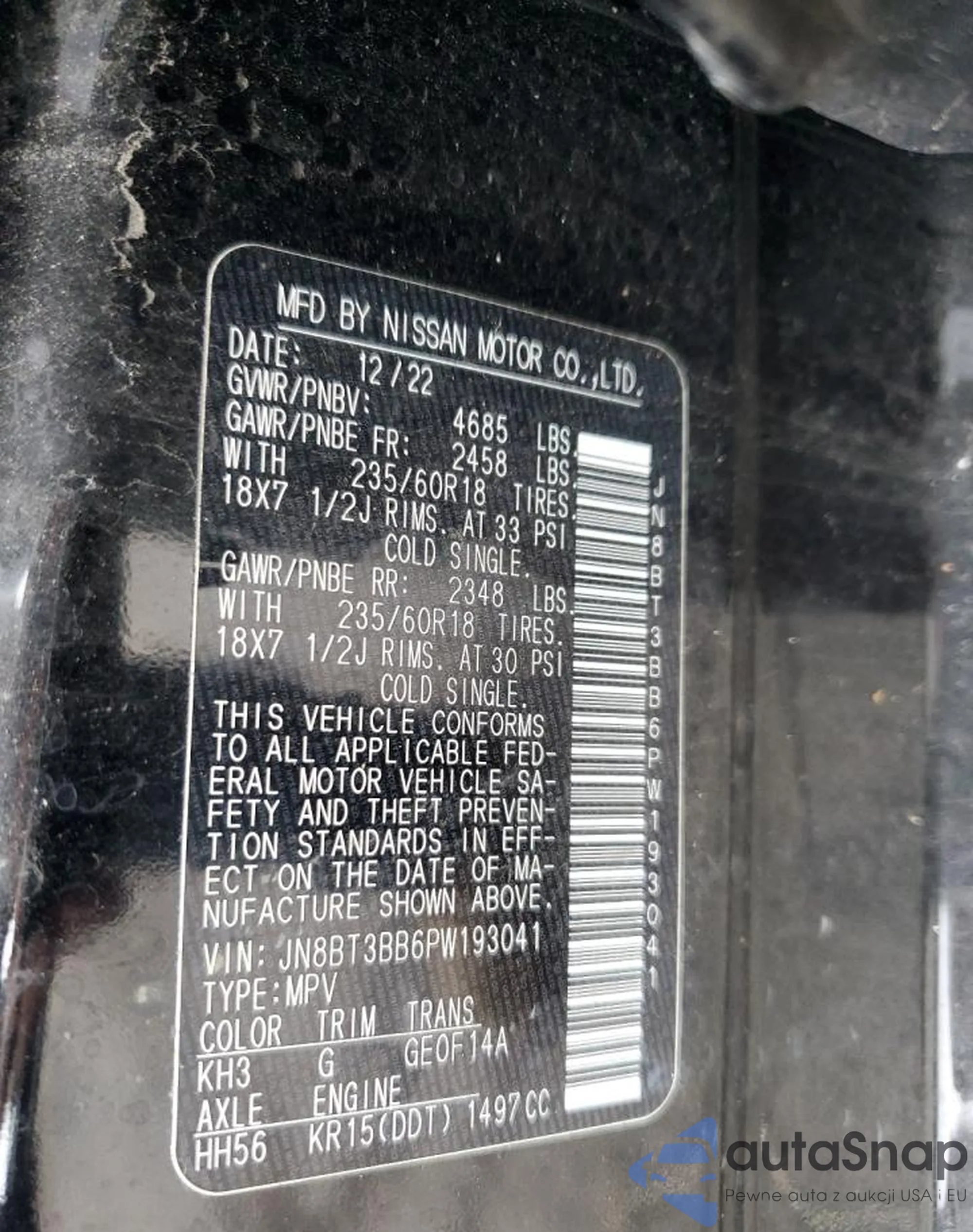 VIN: JN8BT3BB6PW193041