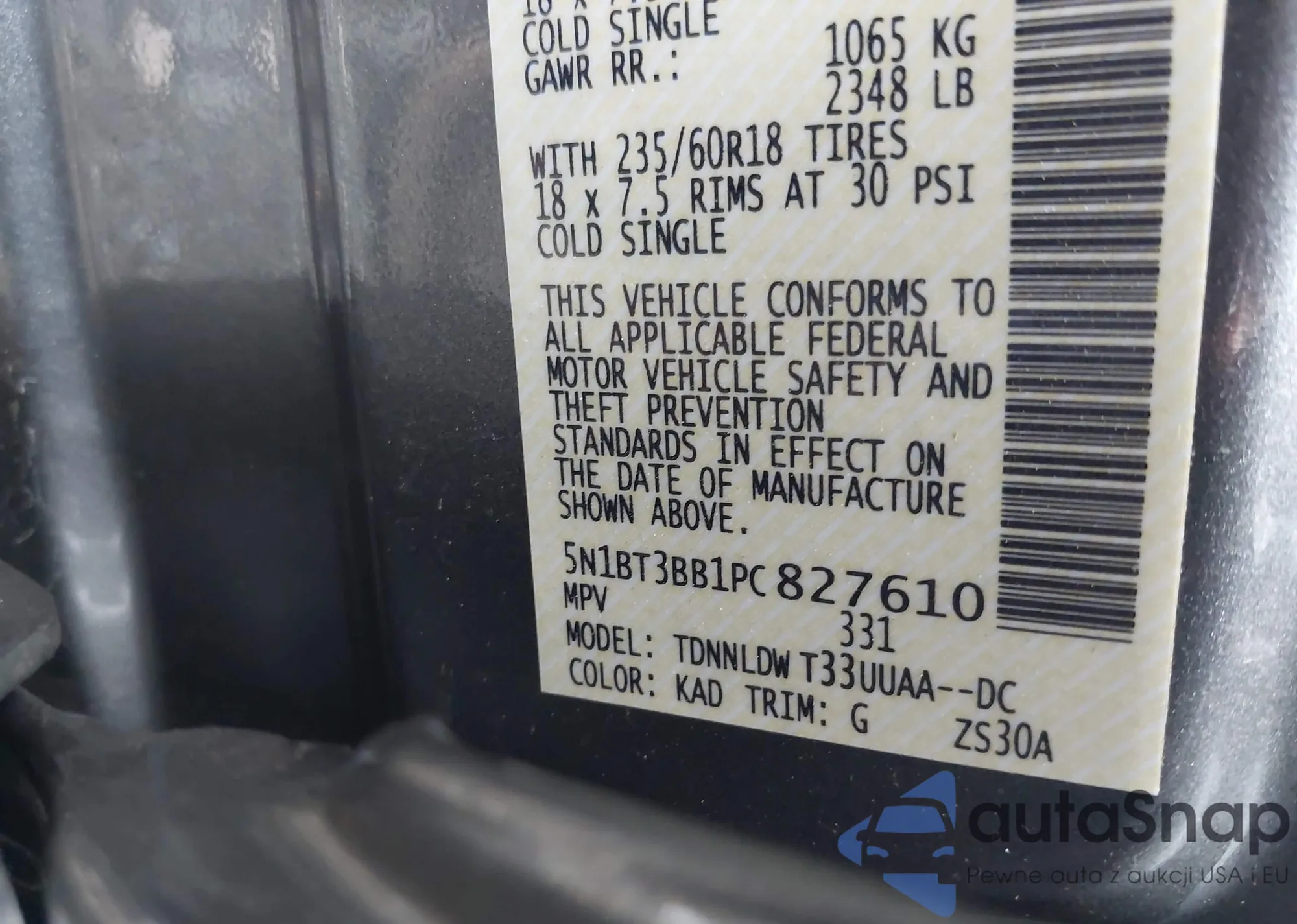 VIN: 5N1BT3BB1PC827610