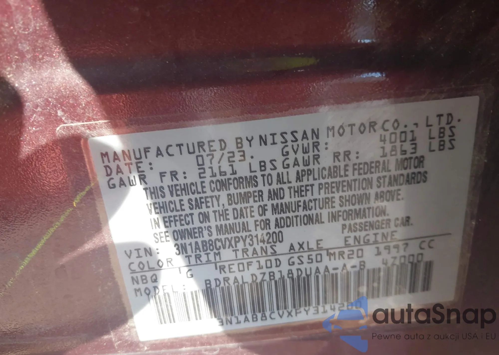 VIN: 3N1AB8CVXPY314200