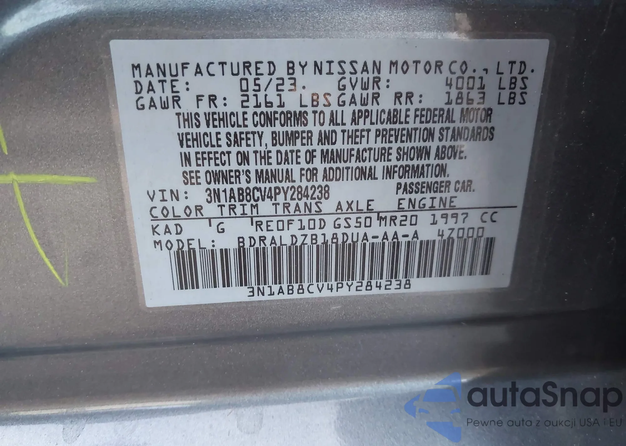 VIN: 3N1AB8CV4PY284238