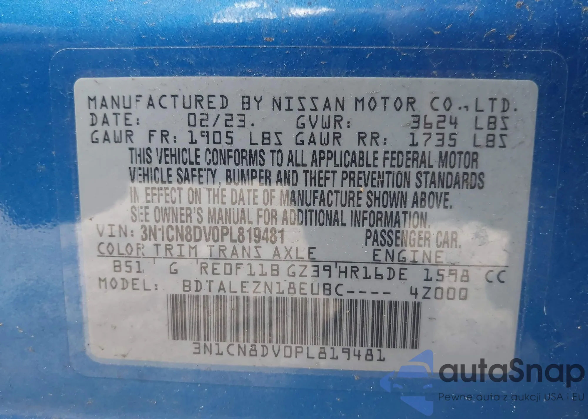 VIN: 3N1CN8DV0PL819481