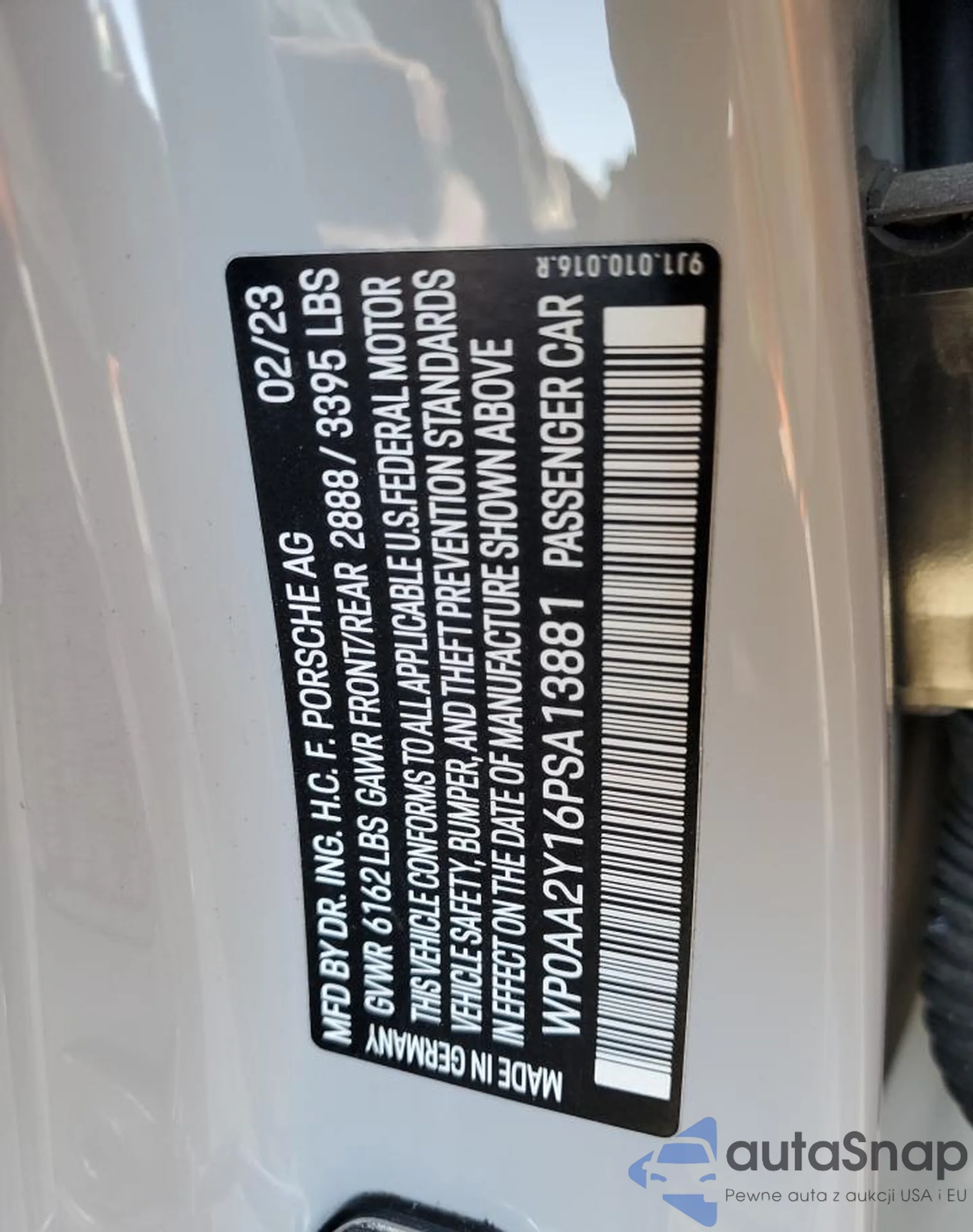 VIN: WP0AA2Y16PSA13881