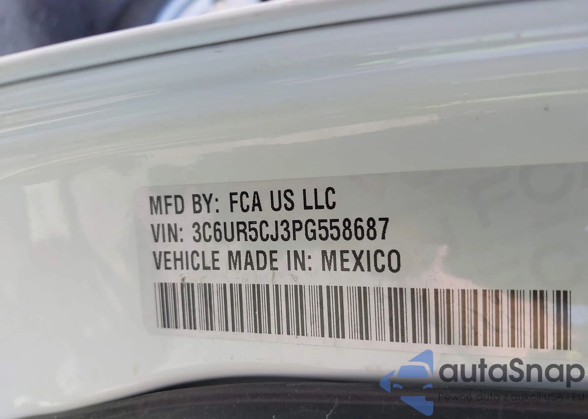 • VIN: 3C6UR5CJ3PG558687
