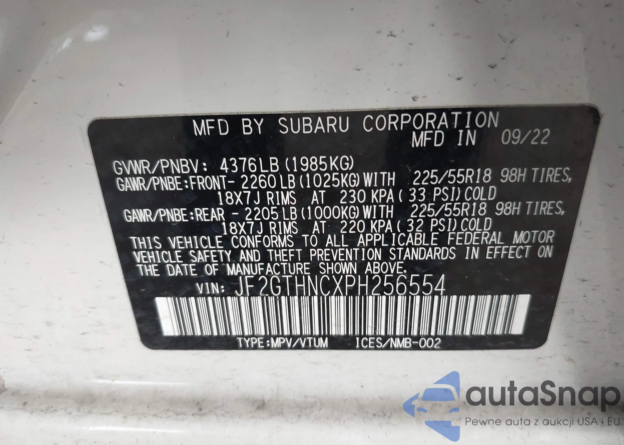 VIN: JF2GTHNCXPH256554