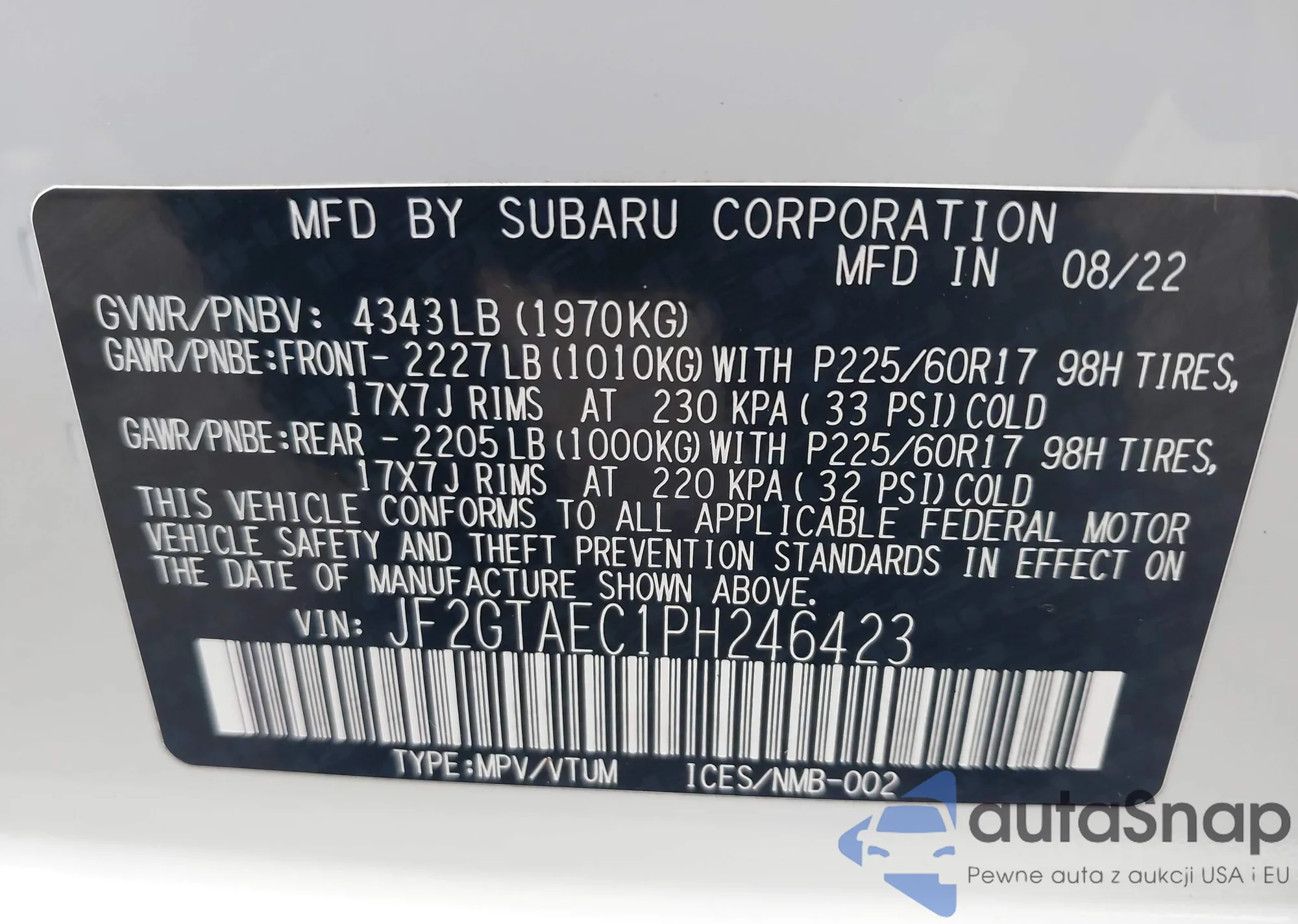 VIN: JF2GTAEC1PH246423