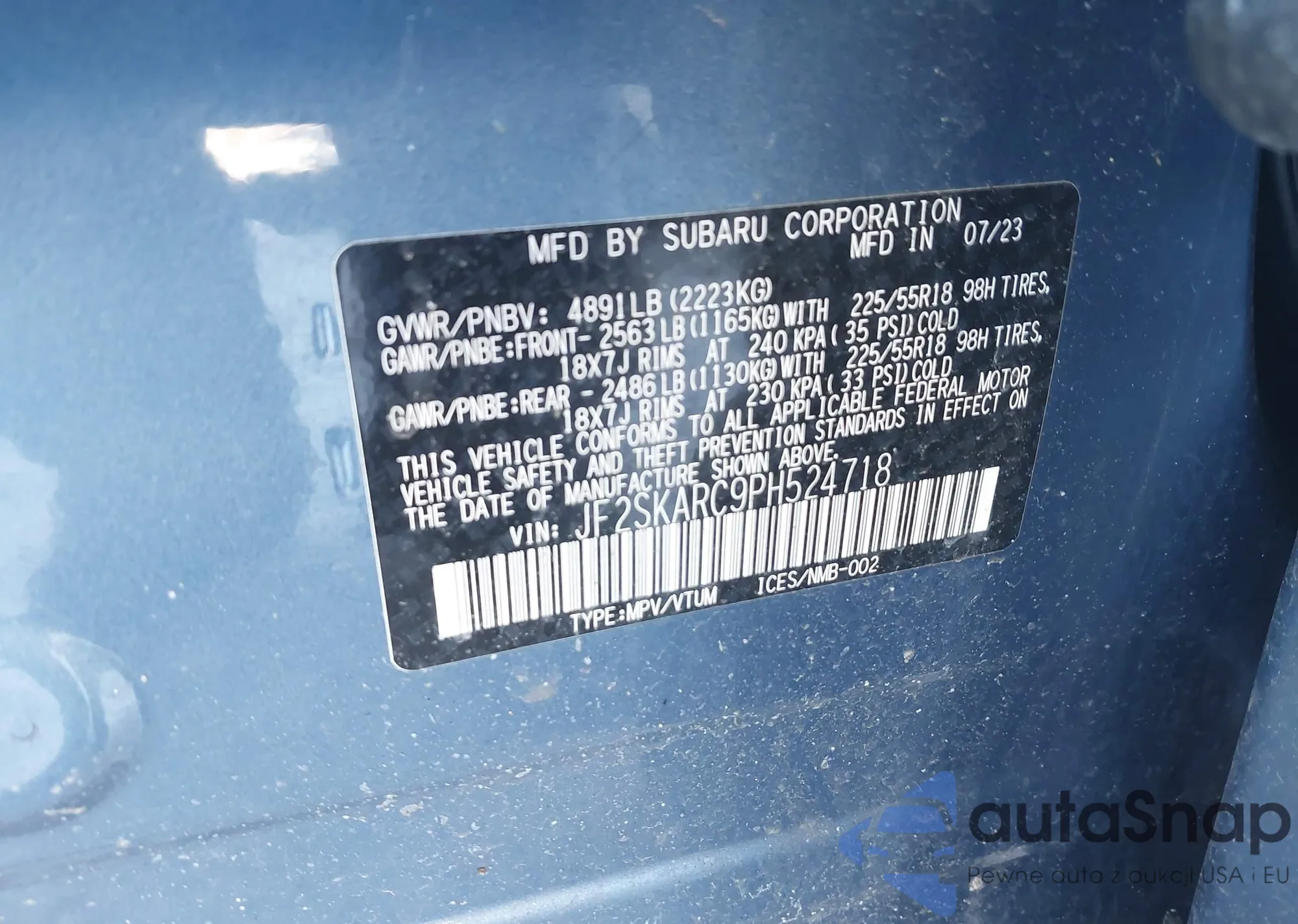 VIN: JF2SKARC9PH524718