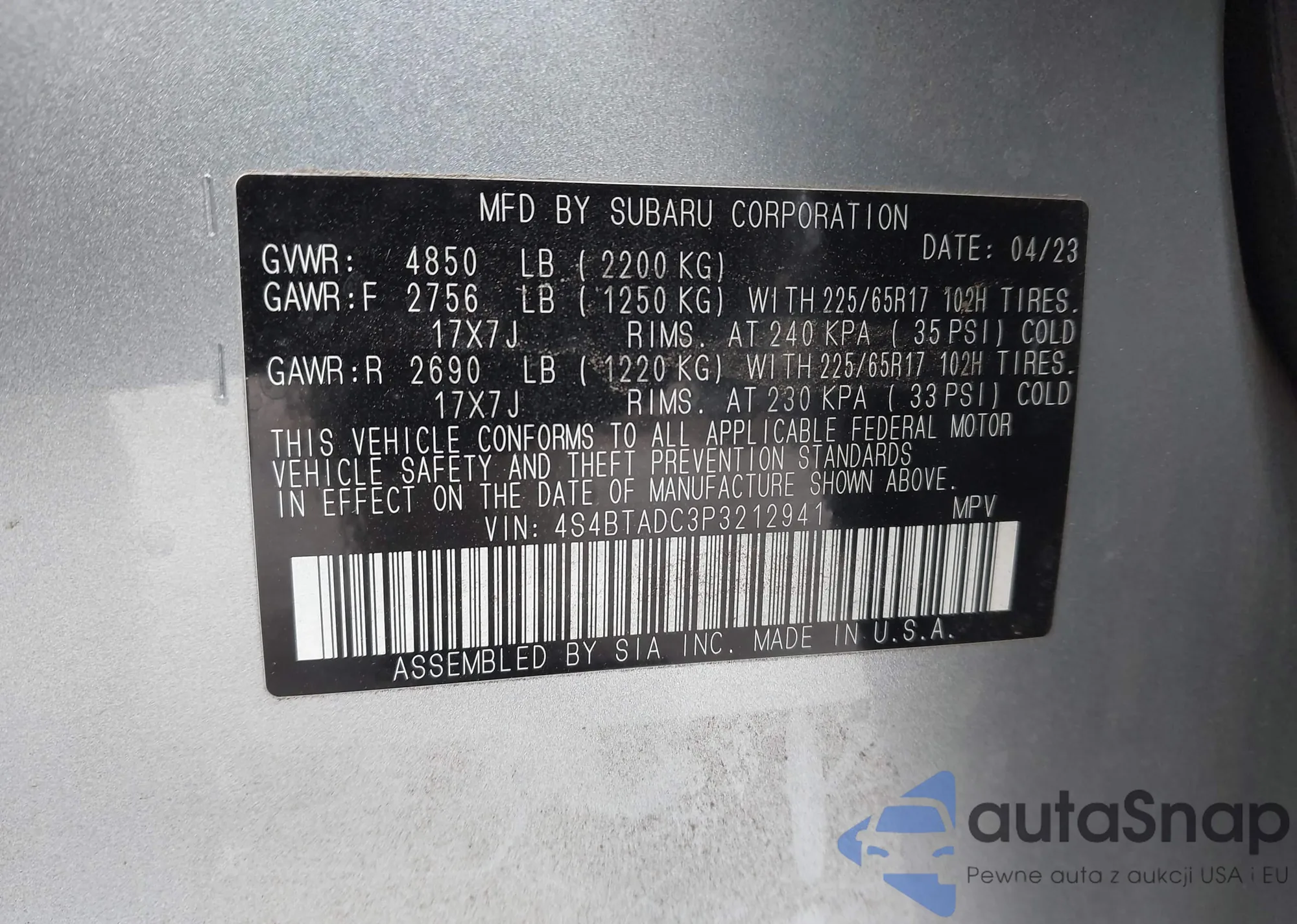 VIN: 4S4BTADC3P3212941