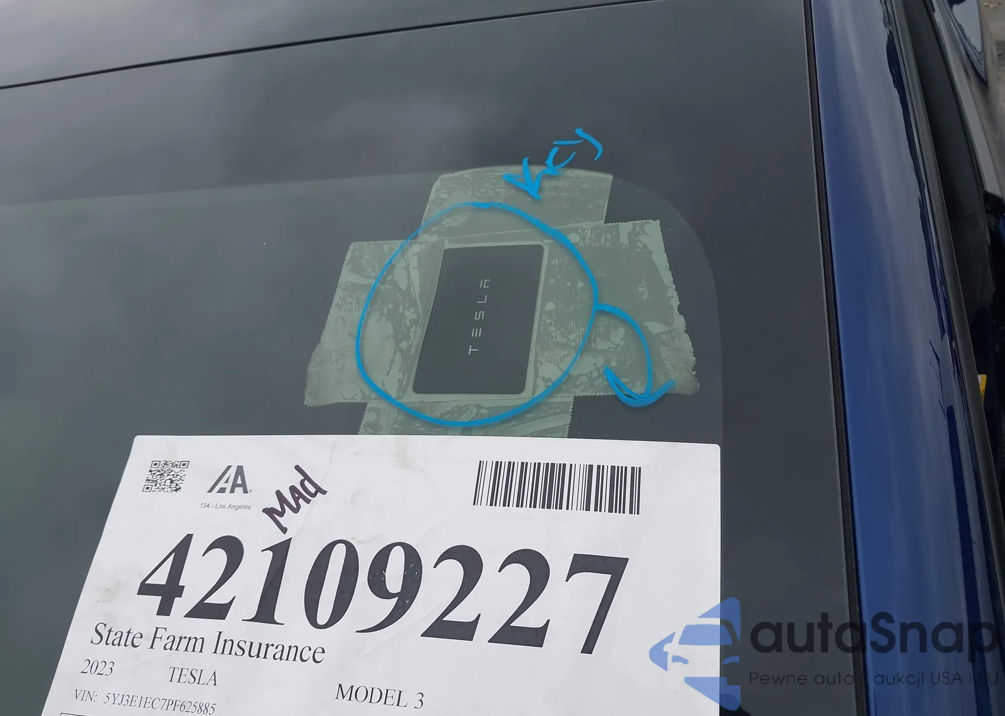 VIN: 5YJ3E1EC7PF625885