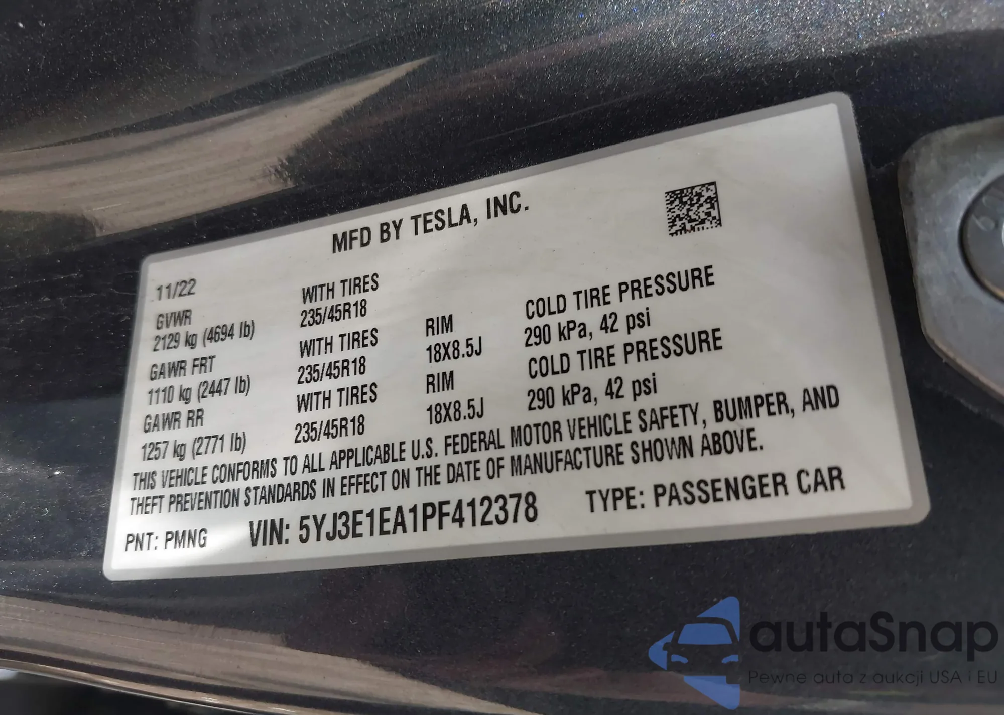 VIN: 5YJ3E1EA1PF412378