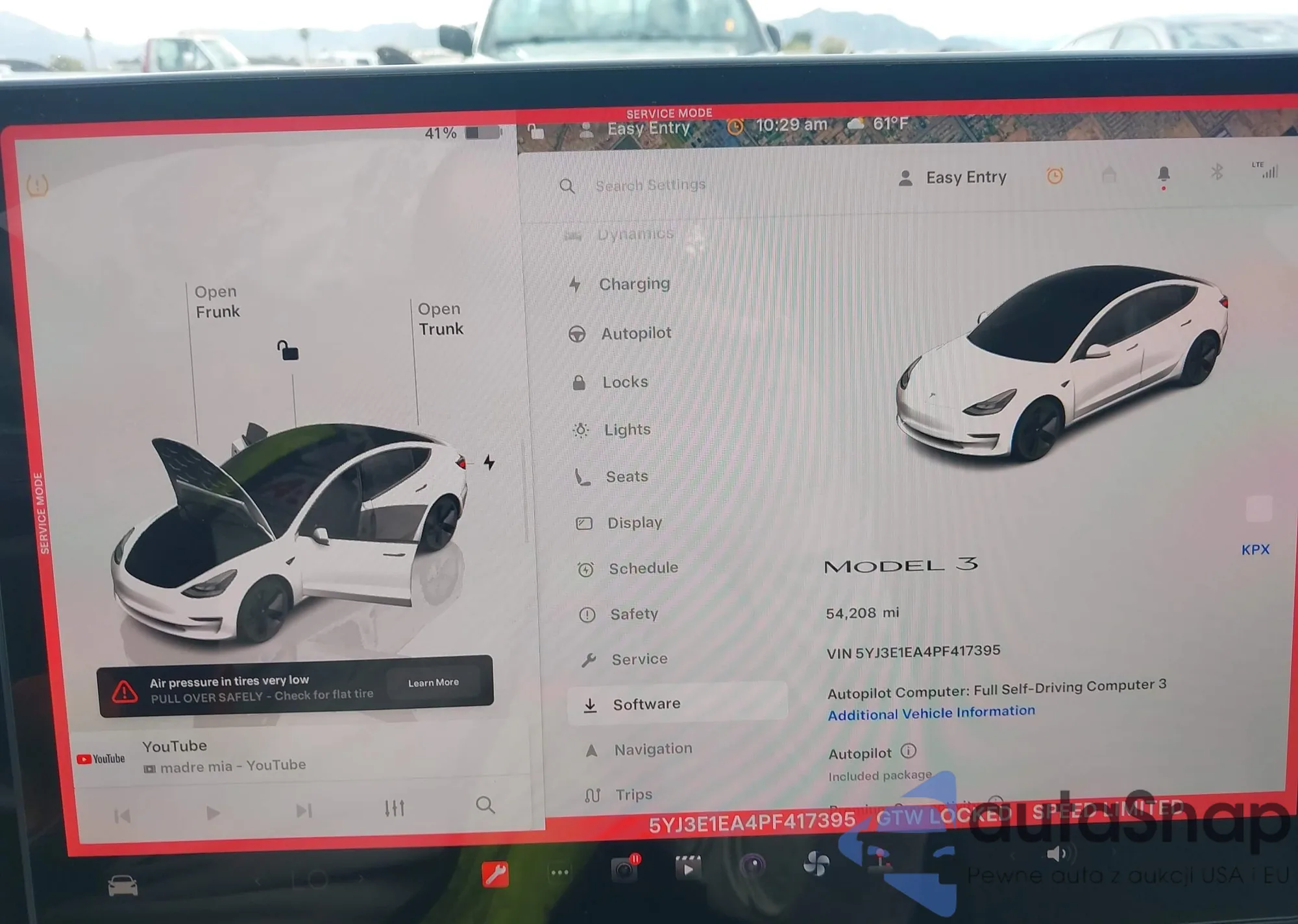 The car Tesla Model 3 2023 (VIN 5YJ3E1EA4PF417395) has not been auctioned before. The documents are clean, and the mileage matches or is below the market average. Sold by an insurance company – we recommend purchase. Delivery to the port will take approx. 6–8 weeks.