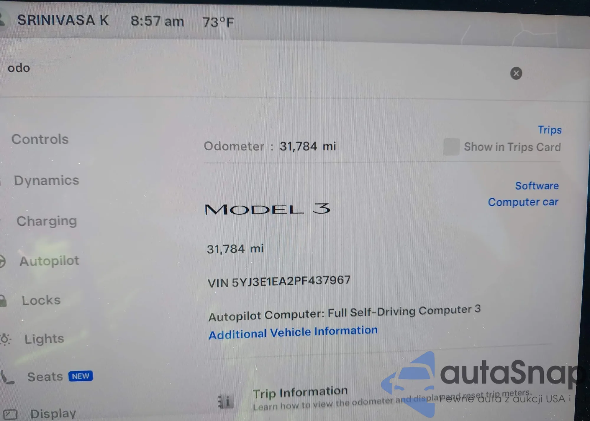 Tesla Model 3 2023 – Vehicle History (Sold at IAAI)