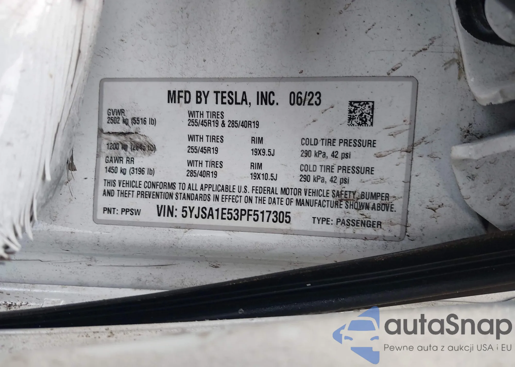 • VIN: 5YJSA1E53PF517305