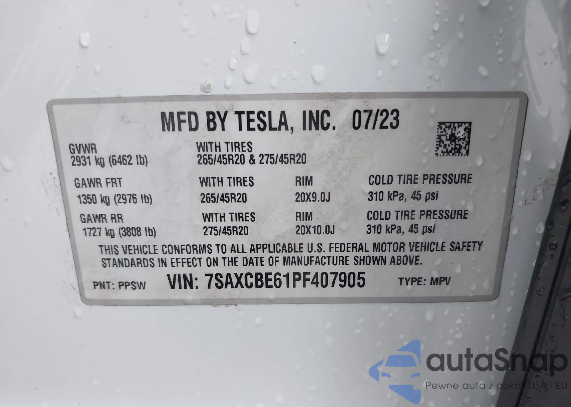 VIN: 7SAXCBE61PF407905