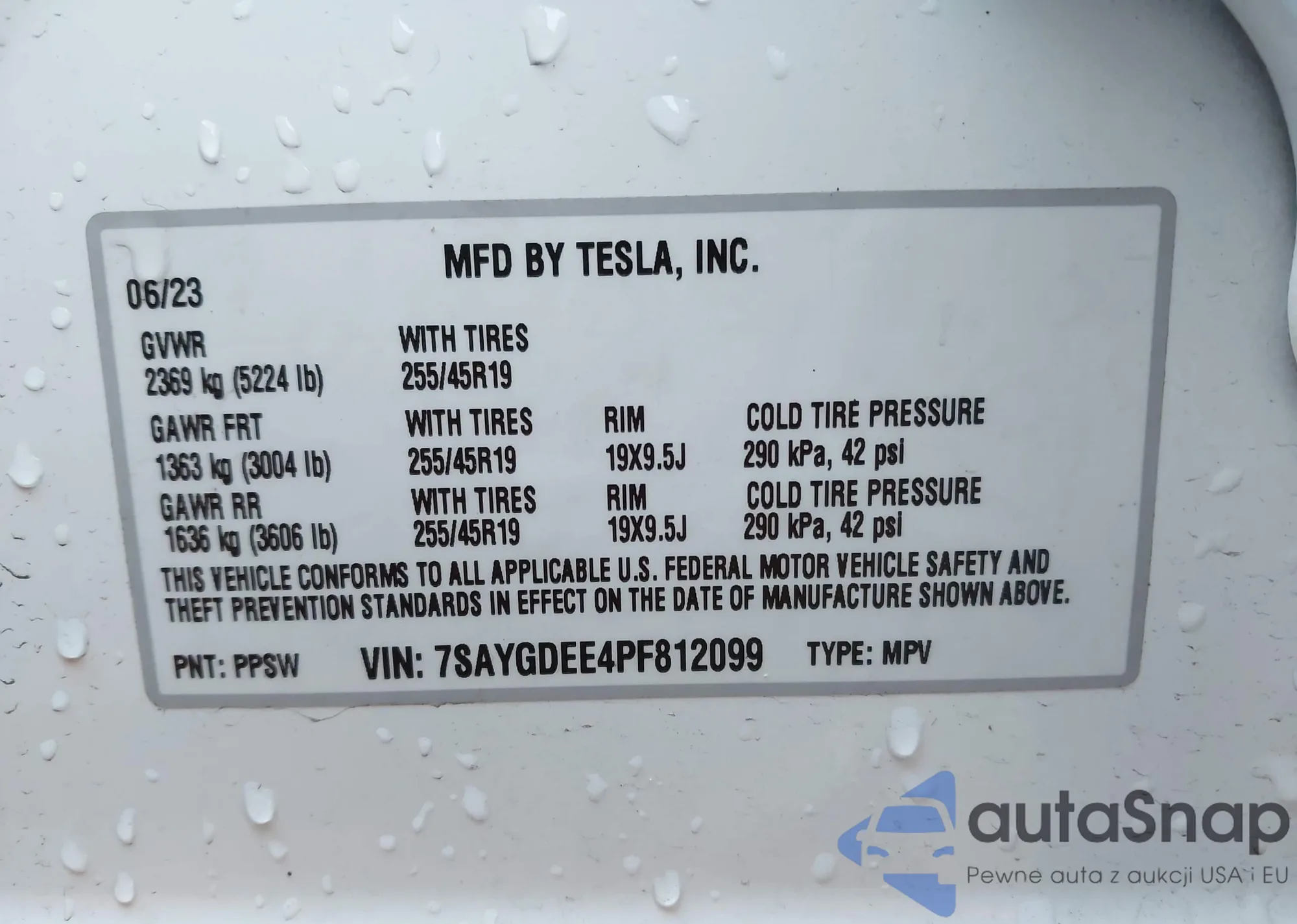 The car Tesla Model Y 2023 (VIN 7SAYGDEE4PF812099) has not been auctioned before. The documents are clean, and the mileage matches or is below the market average. Sold by an insurance company – we recommend purchase. Delivery to the port will take approx. 6–8 weeks.