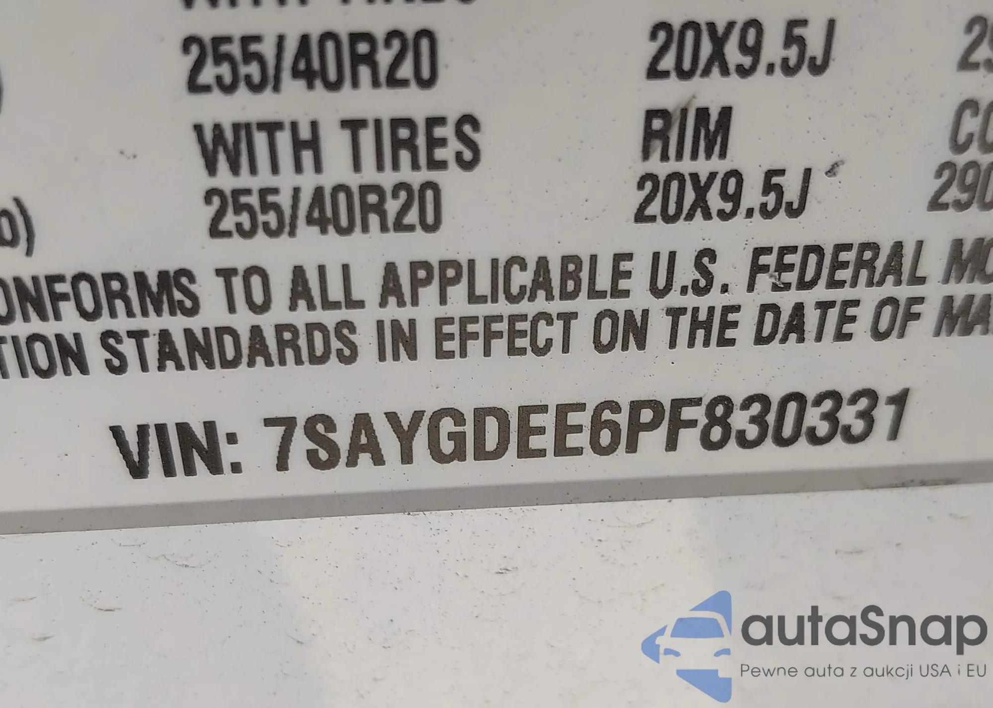 VIN: 7SAYGDEE6PF830331